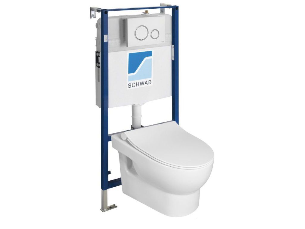 ABSOLUTE závěsné WC Rimless s podomítkovou nádržkou a tlačítkem Schwab, bílá