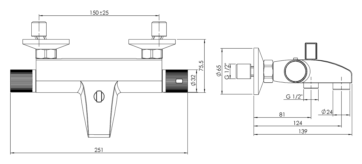 ACTION nástěnná vanová termostatická baterie, chrom