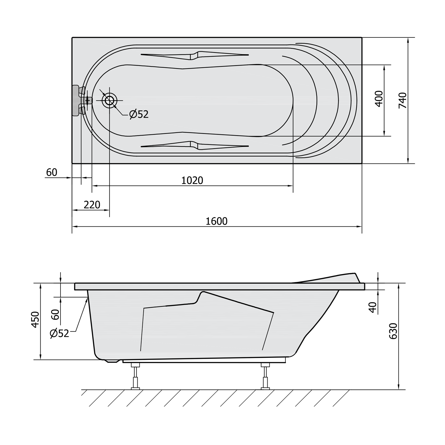 ADRIANA obdélníková vana 160x74x45cm, bílá