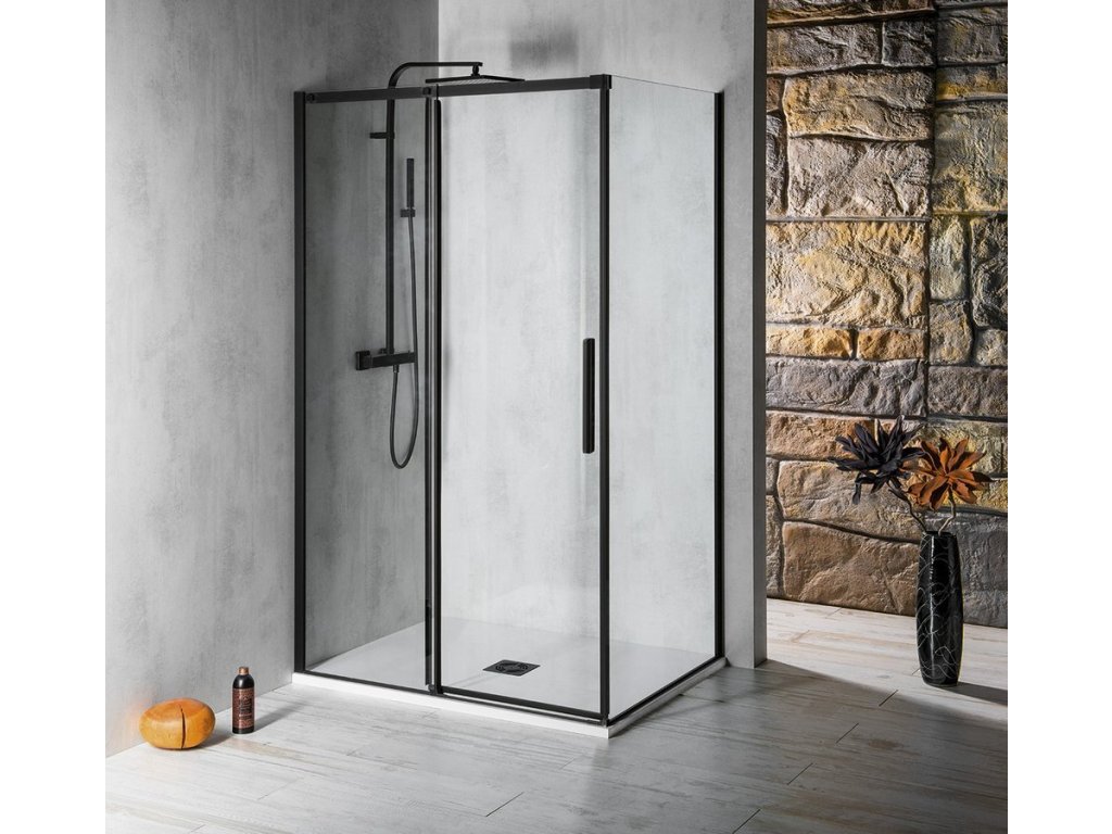 ALTIS BLACK boční stěna 1000mm, čiré sklo, výška 2000mm, čiré sklo