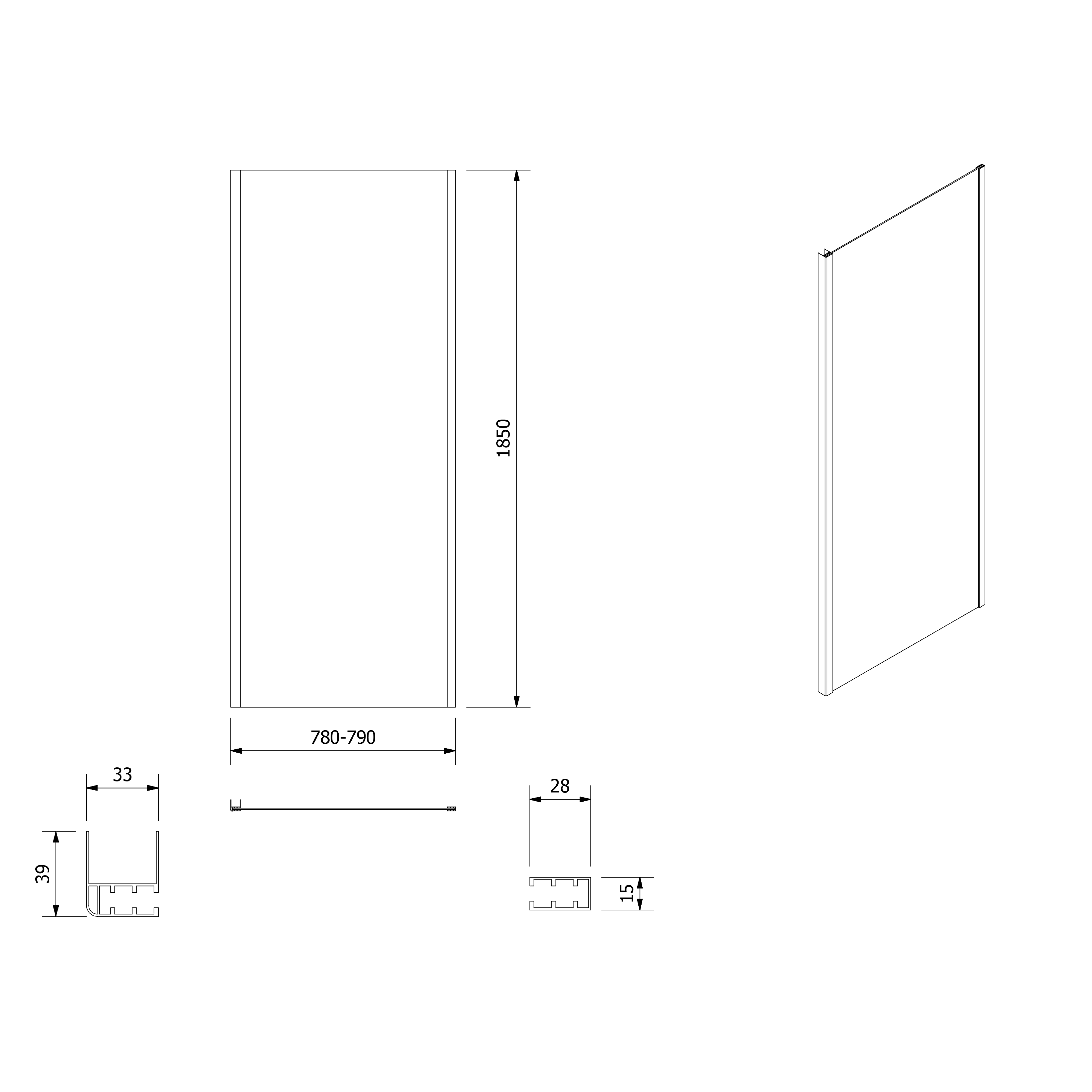 | Tvar: | Pevná stěna ke sprchovým dveřím |