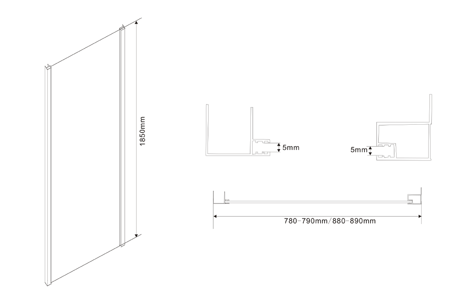 | Tvar: | Pevná stěna ke sprchovým dveřím |