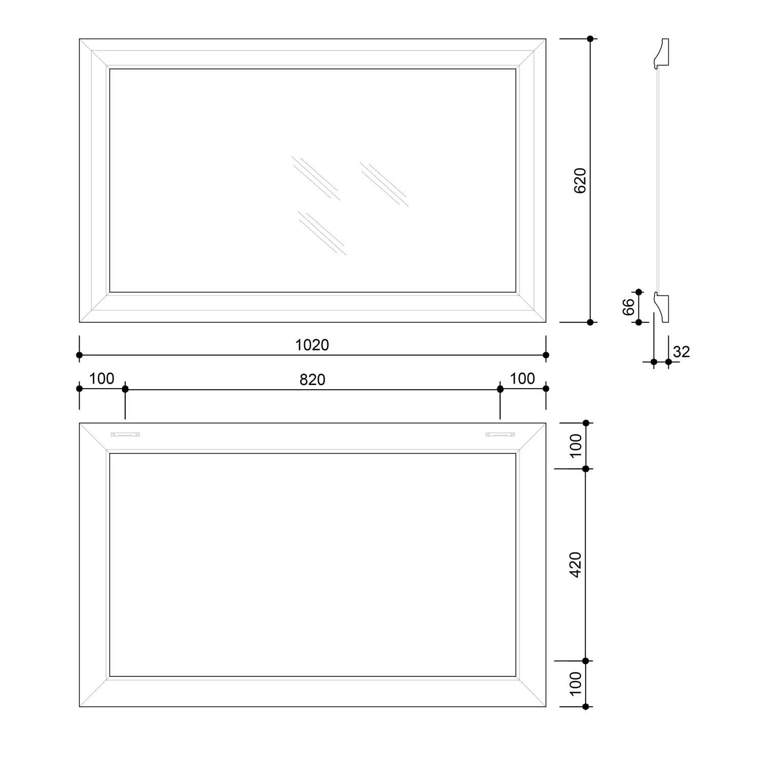 Možné vyrobit v atypickém rozměru: max. rozměr rámu 820x1220 mm (zrcadlo 700x1100 mm, doba dodání do 30 dnů, cena na dotaz)