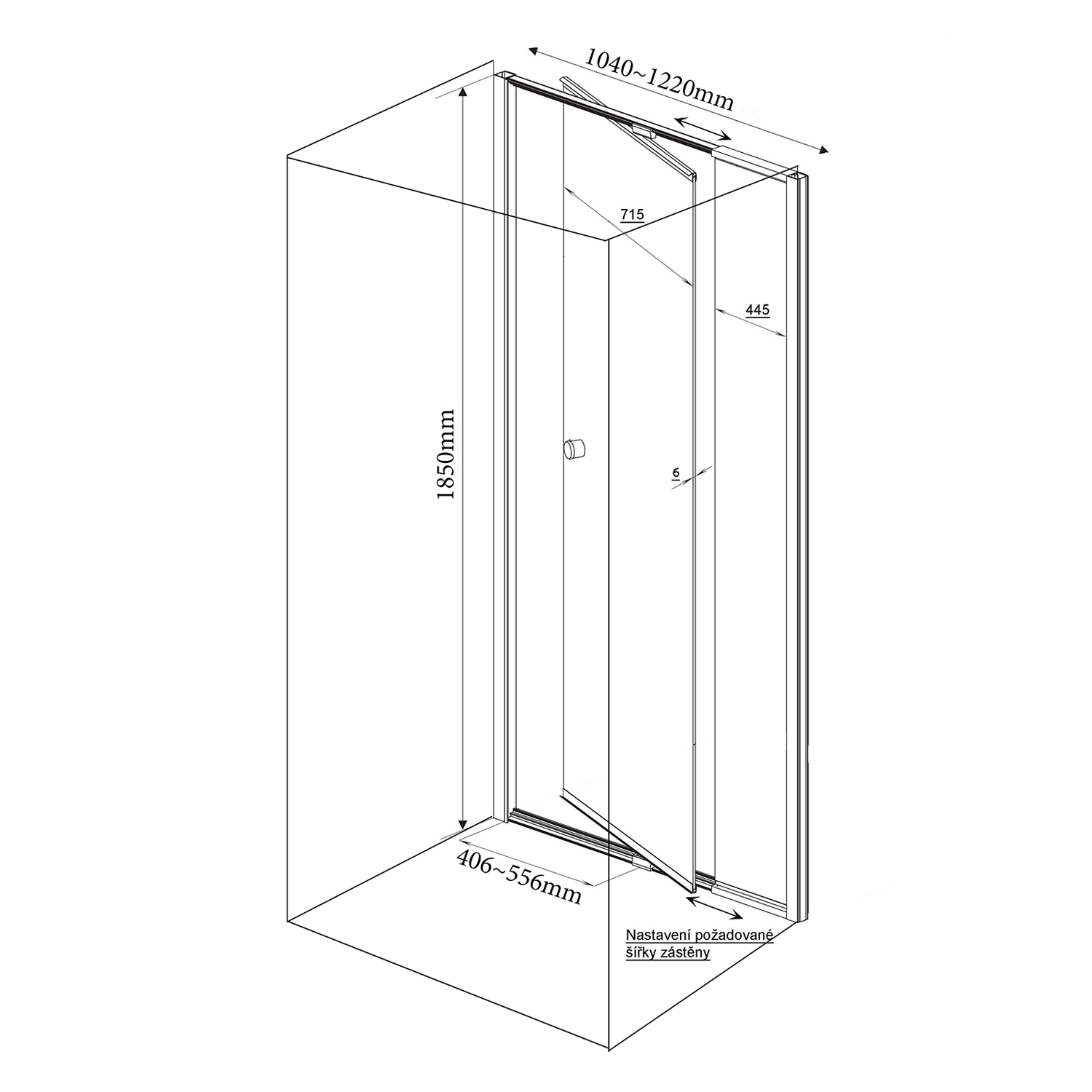 AMICO sprchové dveře výklopné 1040-1220x1850mm, čiré sklo