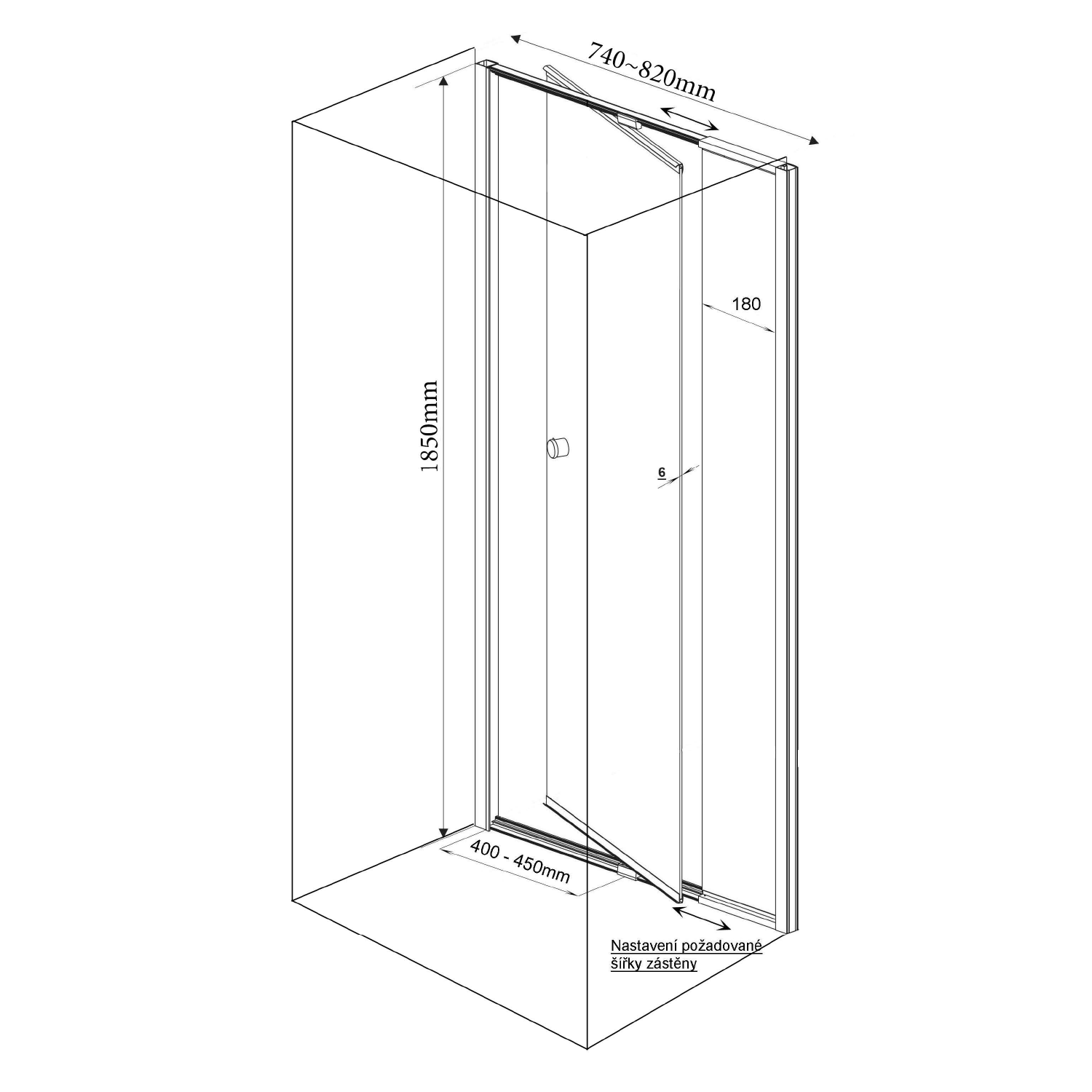 AMICO sprchové dveře výklopné 740-820x1850mm, čiré sklo