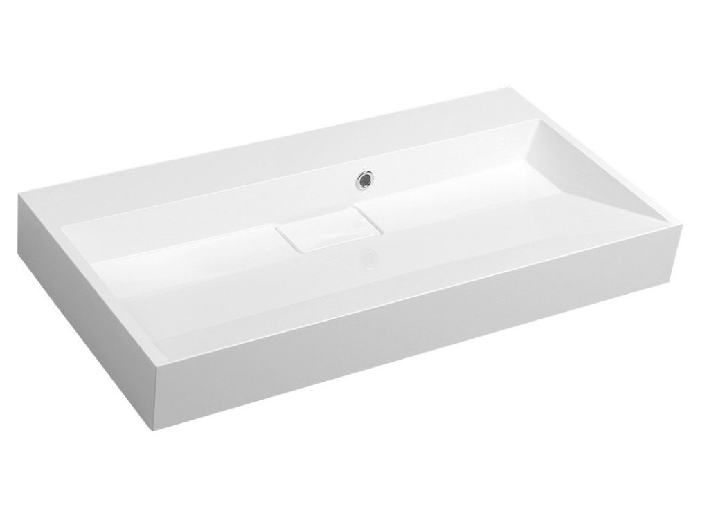 AMUR umyvadlo, litý mramor, 90x46cm, kryt výpusti, bez otvoru, bílá
