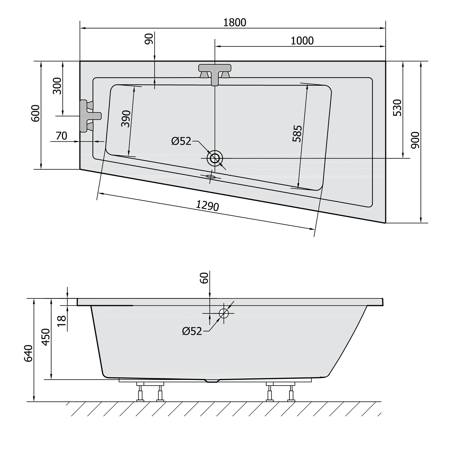 ANDRA R SLIM asymetrická vana 180x90x45cm, bílá