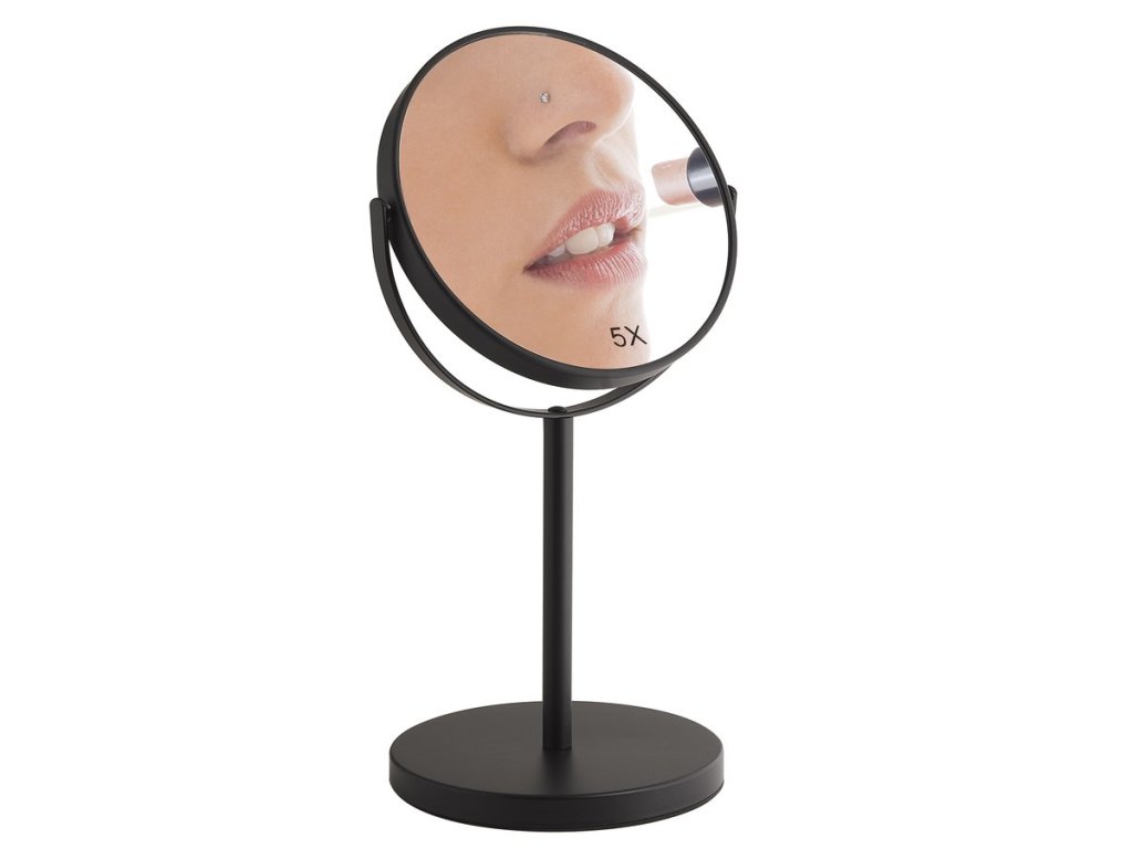 ANNA kosmetické zrcátko na postavení, Ø 163mm, oboustranné, černá mat