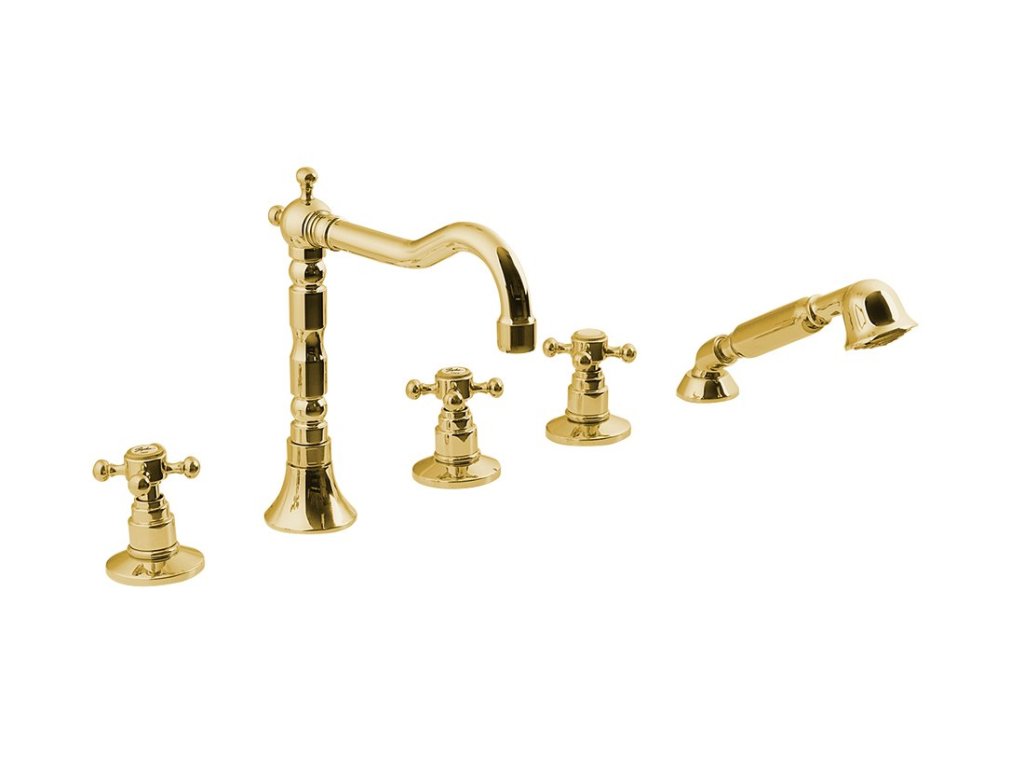 ANTEA pětiprvková baterie na okraj vany s retro hubicí, zlato
