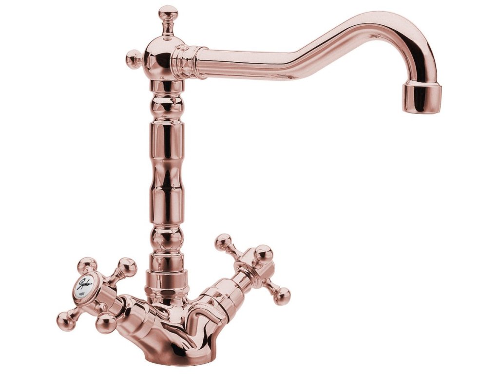 ANTEA stojánková umyvadlová baterie s retro hubicí s výpustí, růžové zlato