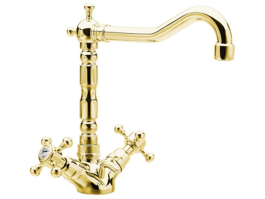 ANTEA stojánková umyvadlová baterie s retro hubicí s výpustí, zlato