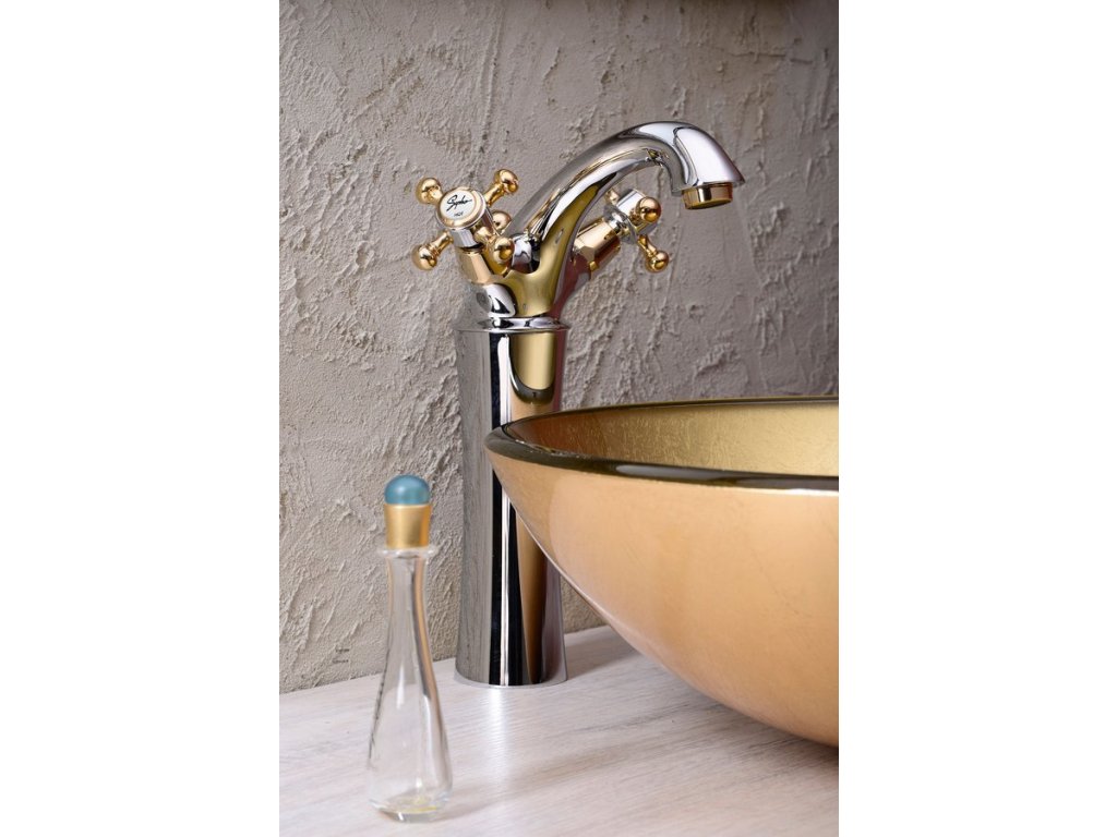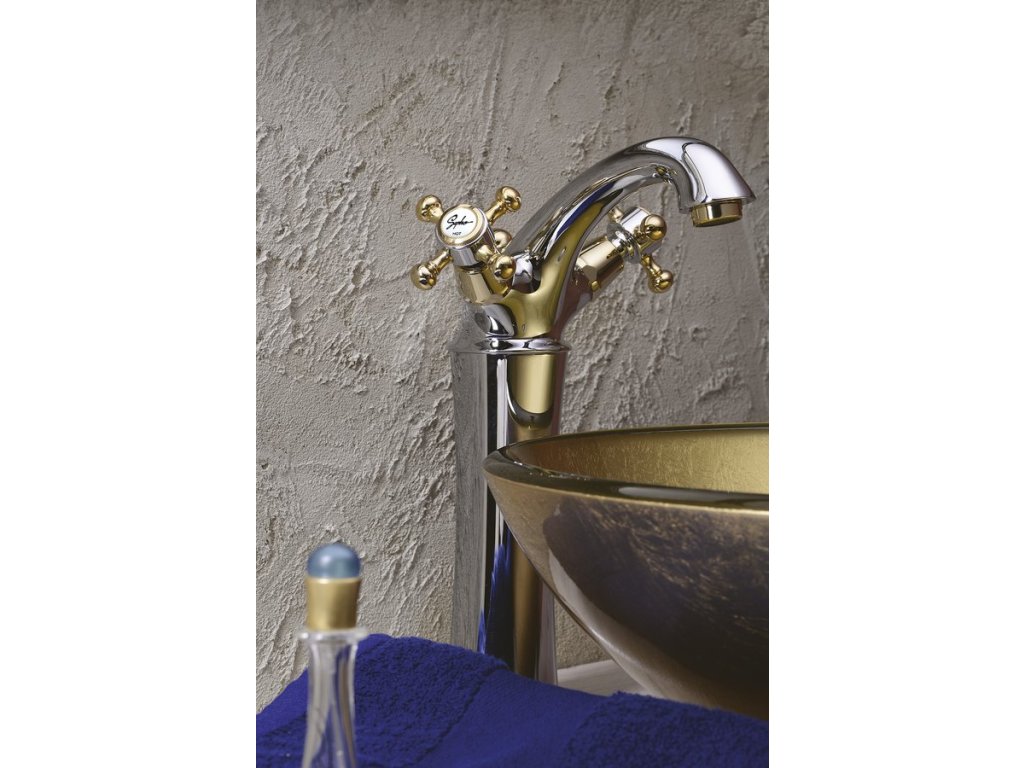 ANTEA stojánková umyvadlová baterie vysoká s výpustí, výška 245mm, chrom/zlato