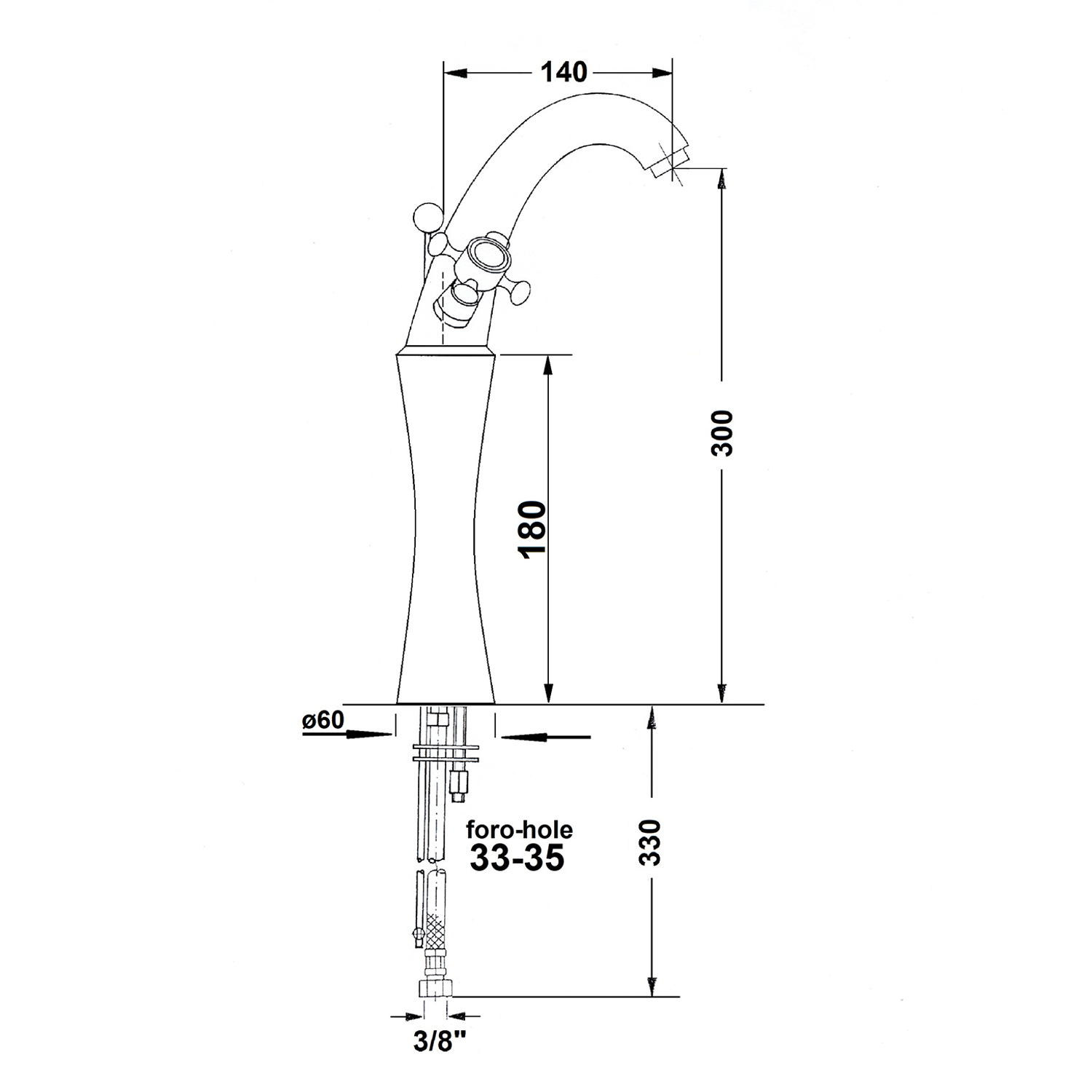 ANTEA stojánková umyvadlová baterie vysoká s výpustí, výška 300mm, nikl