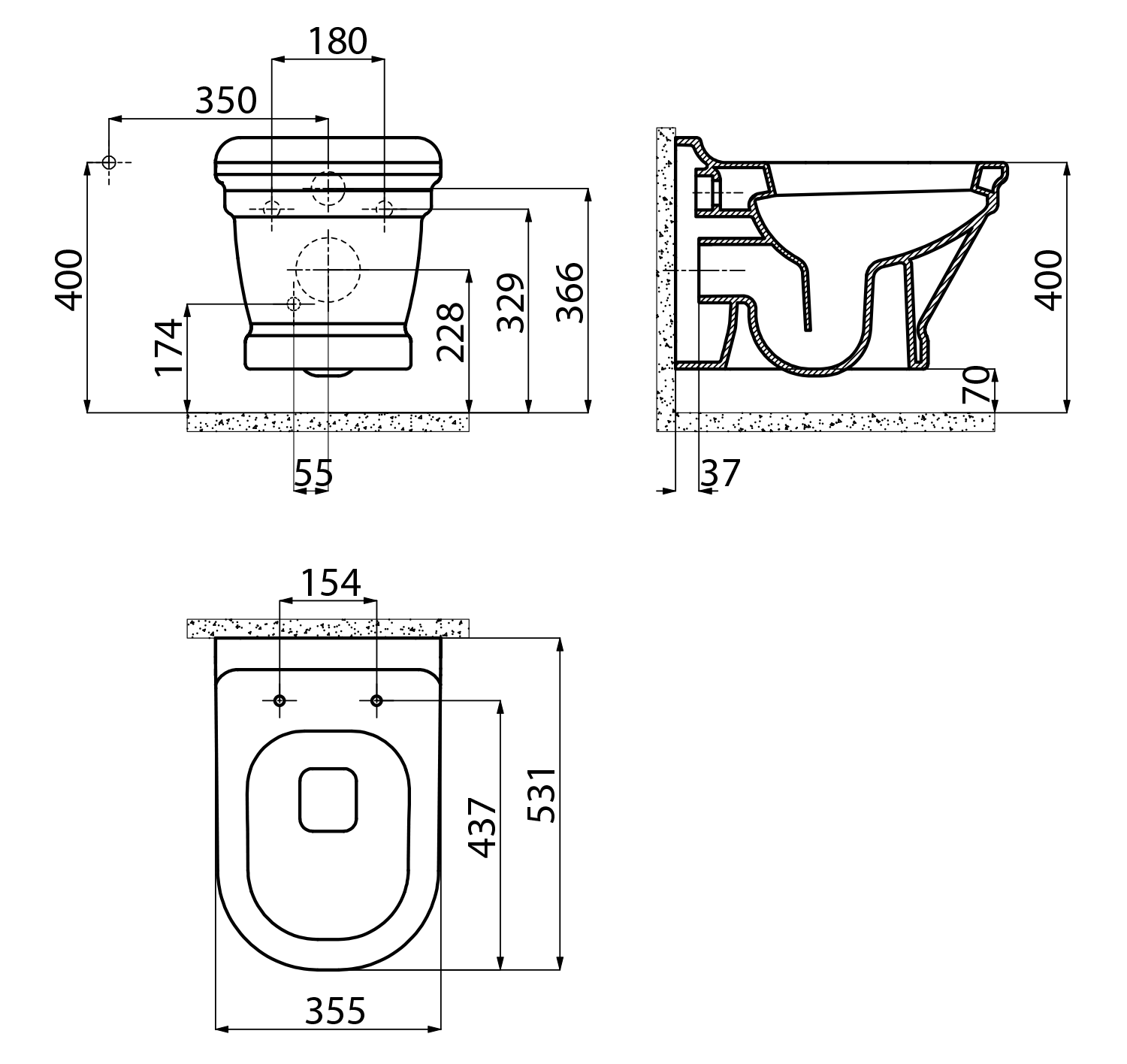 ANTIK závěsná WC mísa, 36x53cm, bílá