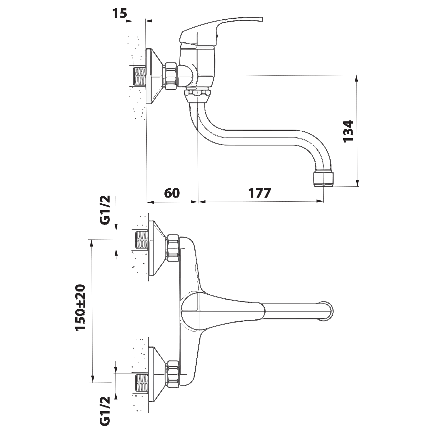 | Instalace: | Nástěnná 150 mm |