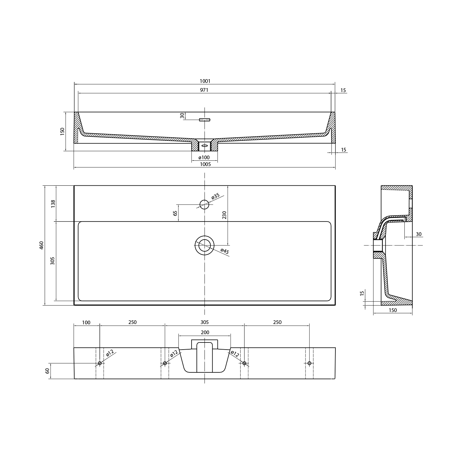 AQUATIC umyvadlo, litý mramor, 100x46cm, bílá
