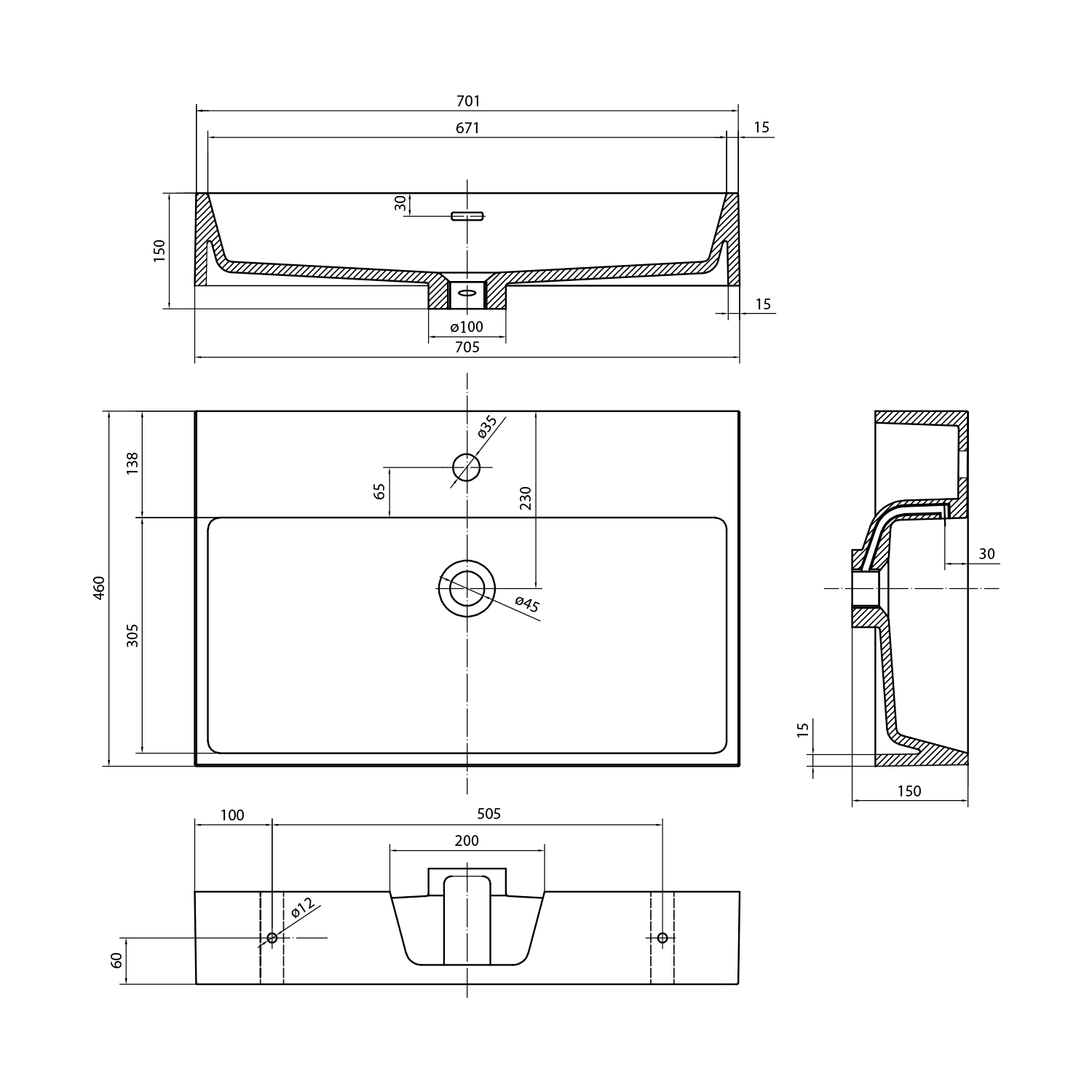 AQUATIC umyvadlo, litý mramor, 70x46cm, bílá