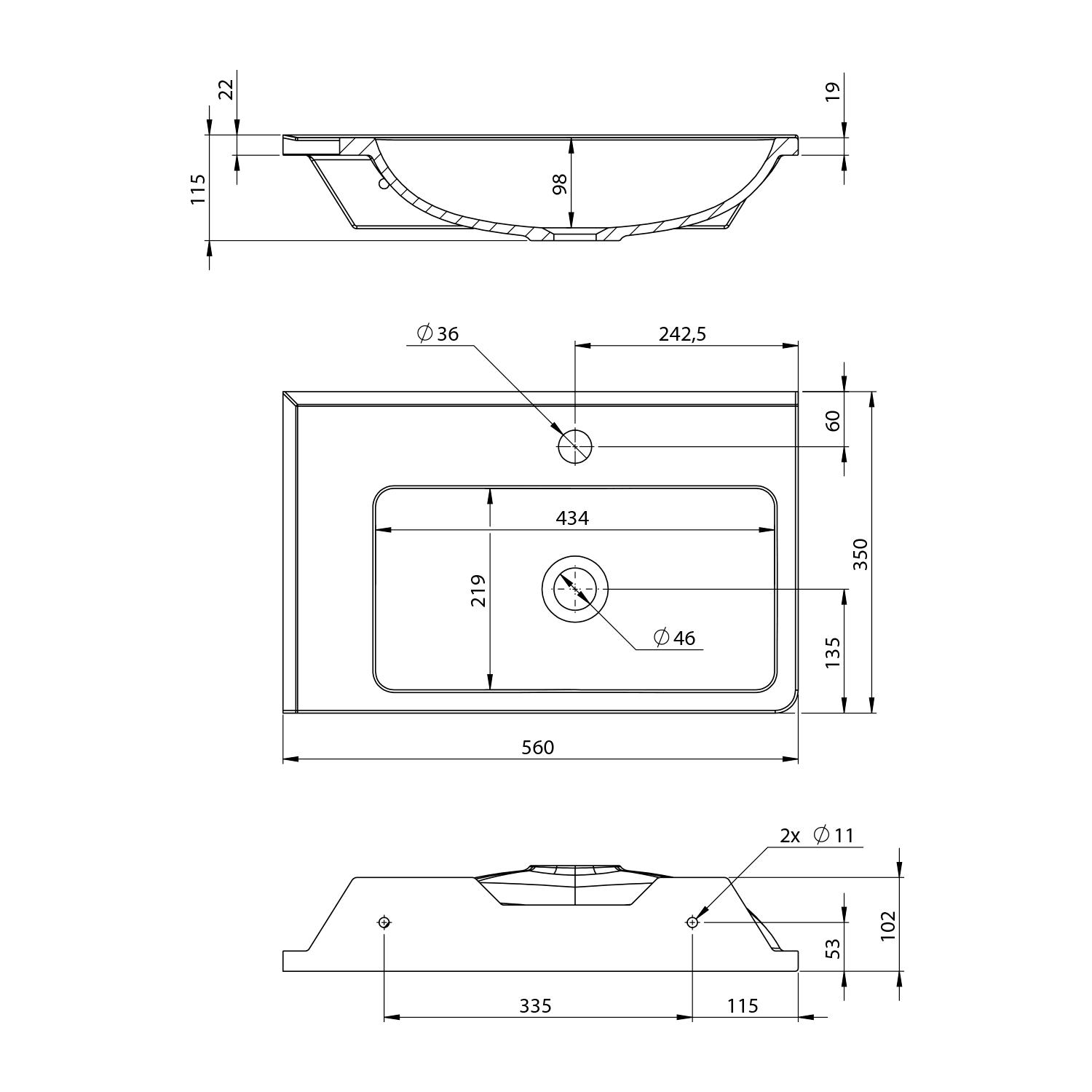 ARANA umyvadlo rohové, litý mramor, 56x35cm, levé, bílá