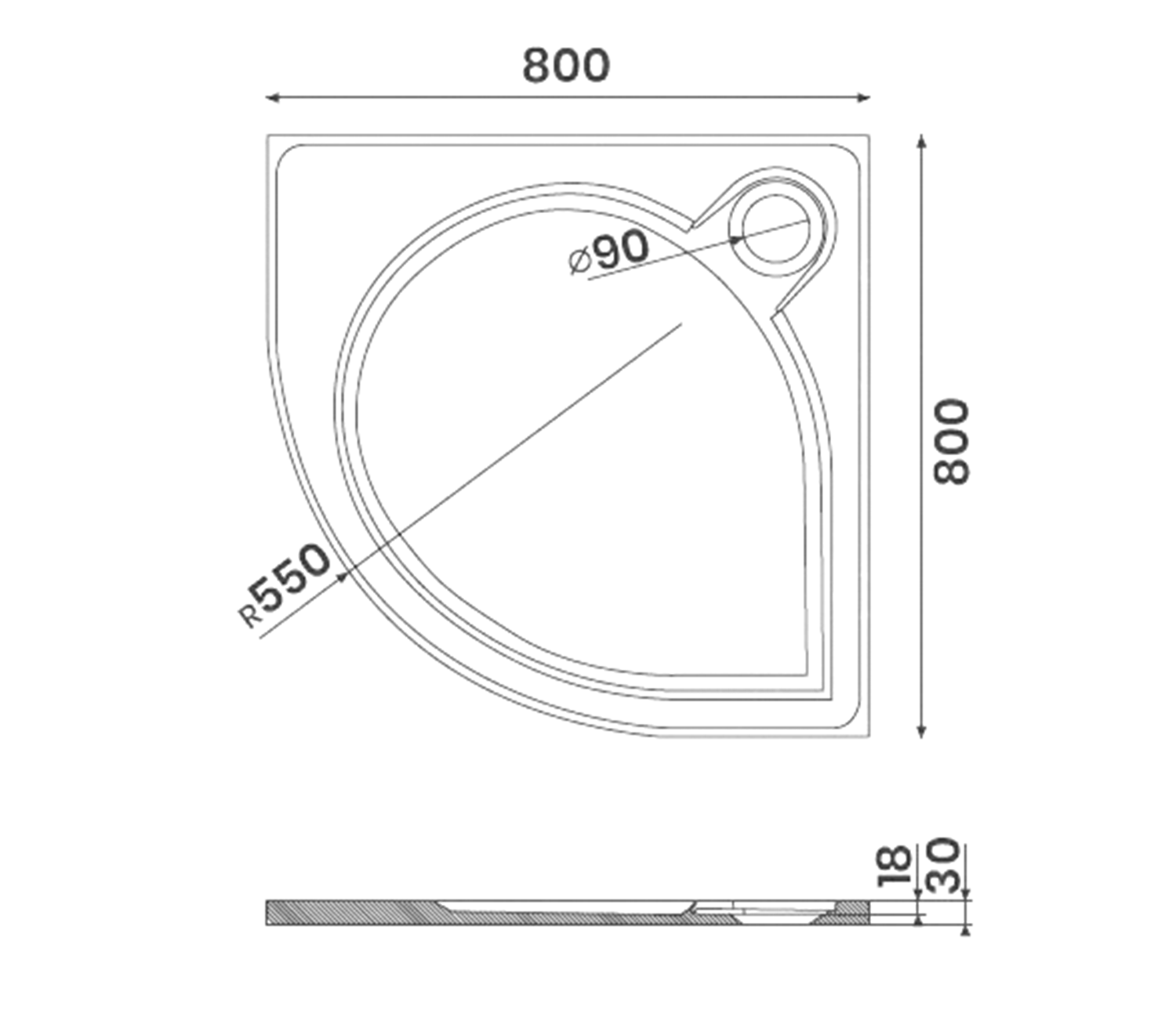 ARCA sprchová vanička z litého mramoru, čtvrtkruh 80x80cm, R550, bílá