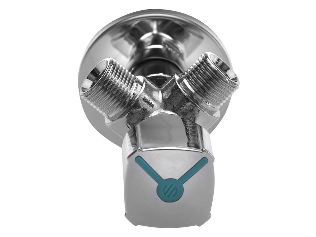 Rohový kombinovaný ventil A-80 obsahuje dva vývody vody, které lze uzavírat a otevírat nezávisle na sobě. Oba vývody je také možné současně otevřít i zavřít.