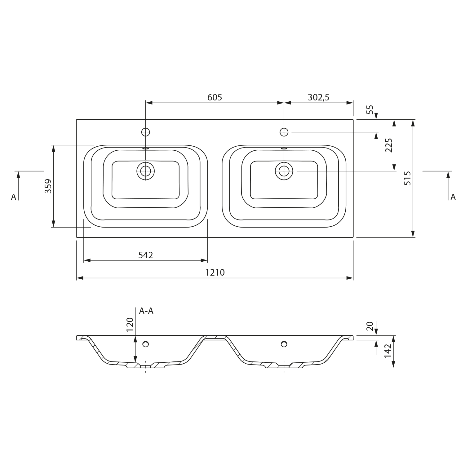 | Typ umyvadla: | Dvojumyvadlo |