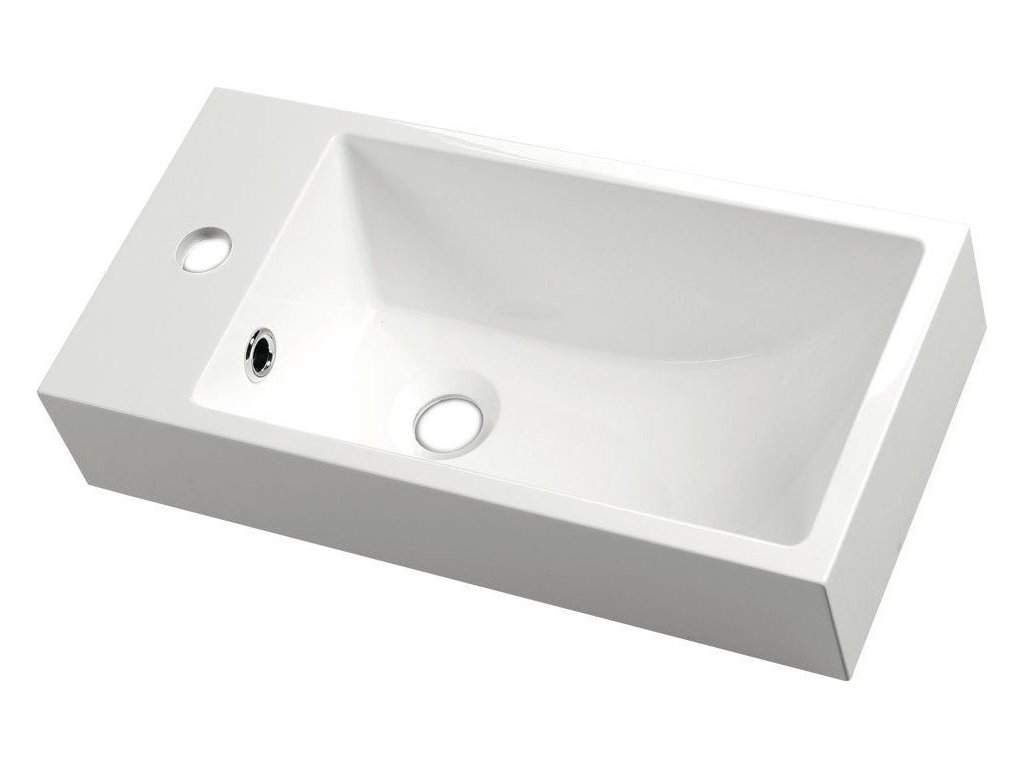 ARIANA umývátko, litý mramor, 50x25cm, baterie vlevo, bílá