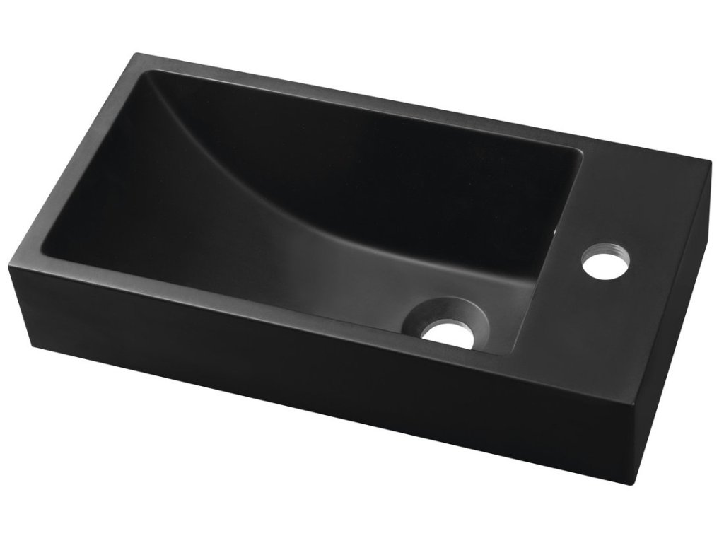 ARIANA umývátko, litý mramor, 50x25cm, baterie vpravo, černá mat