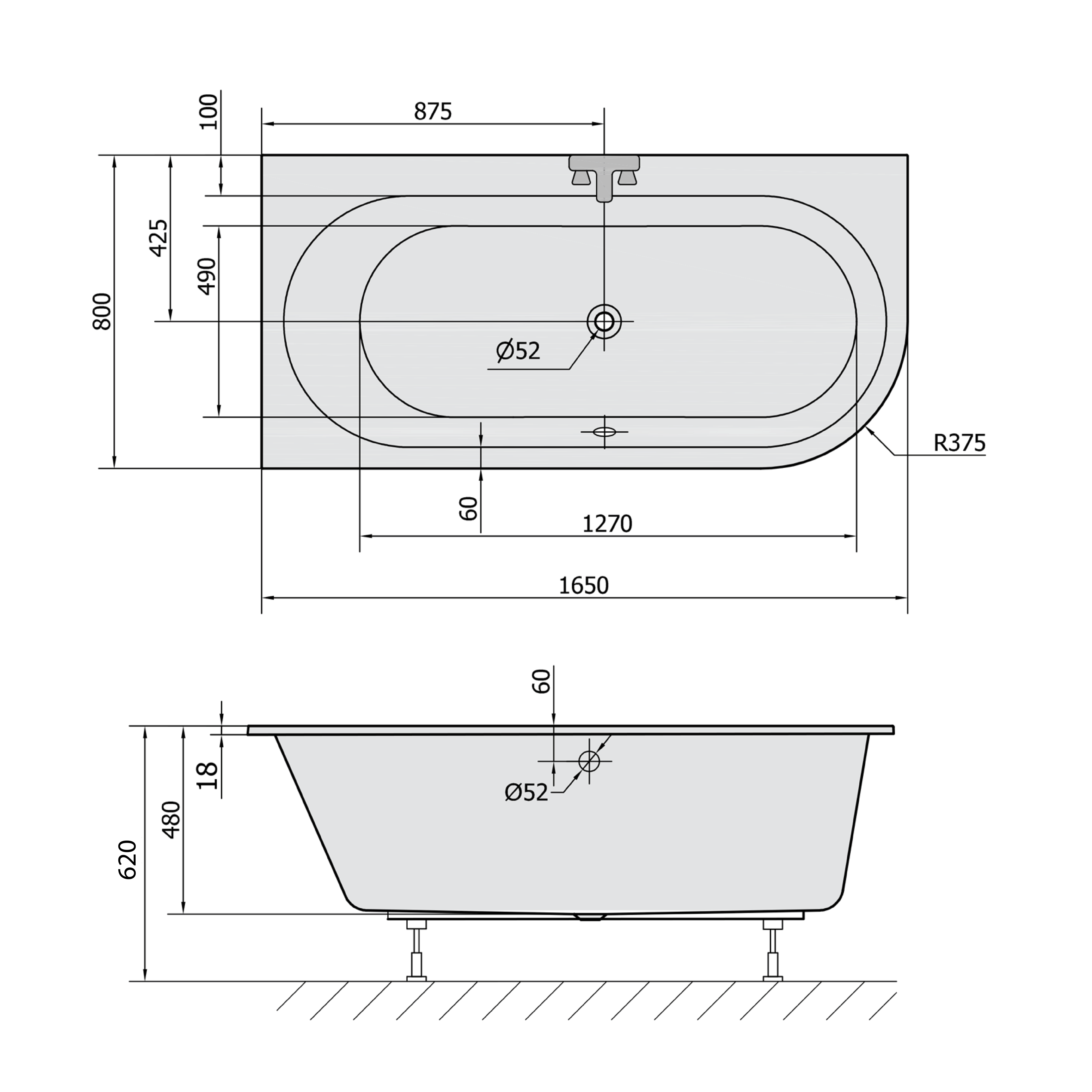 ASTRA L SLIM asymetrická vana 165x80x48cm, bílá