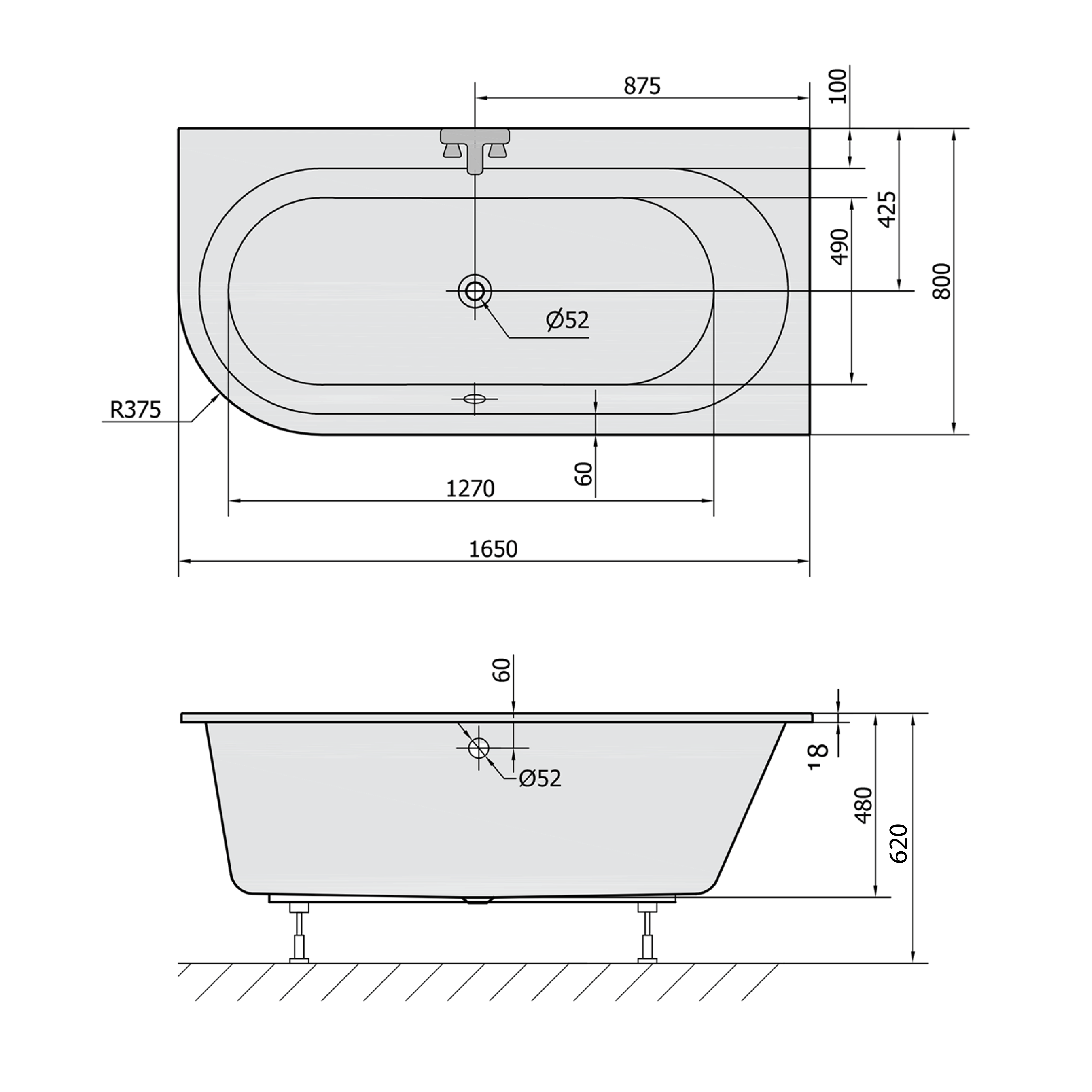 ASTRA R SLIM asymetrická vana 165x80x48cm, bílá