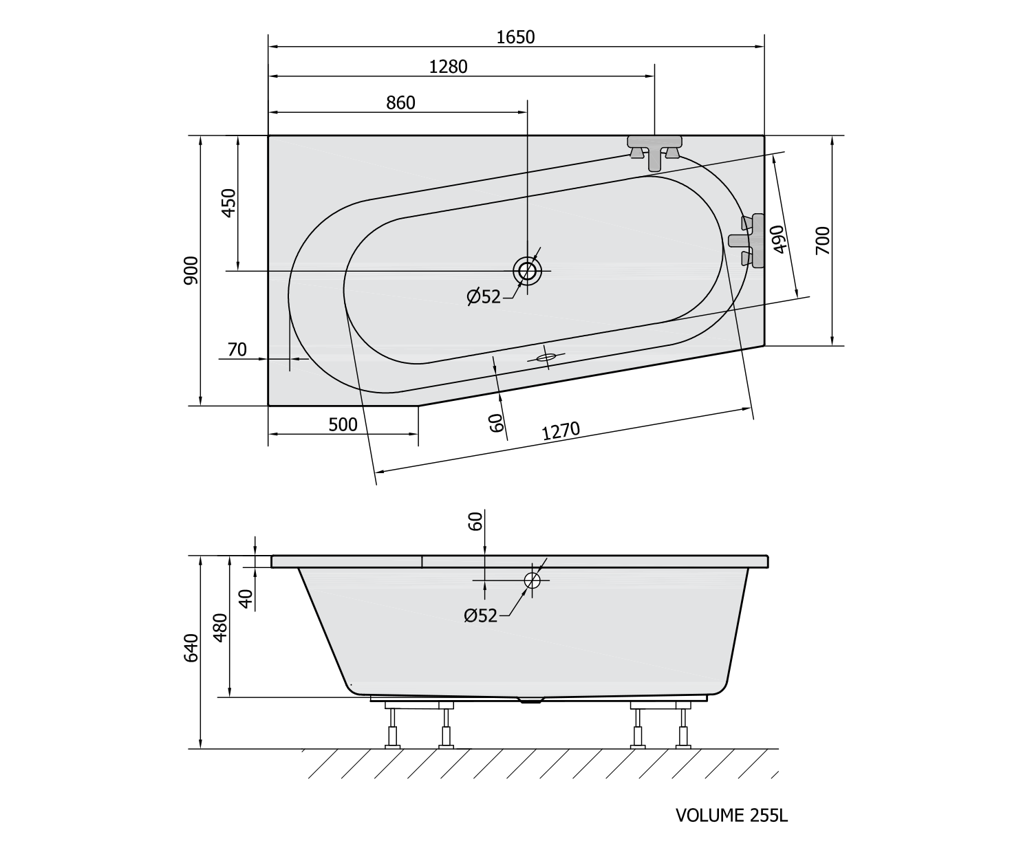 ASTRA WL asymetrická vana 165x90x48cm, bílá