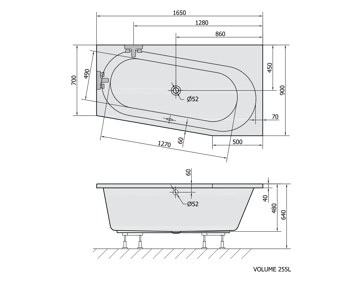 ASTRA WR asymetrická vana 165x90x48cm, bílá