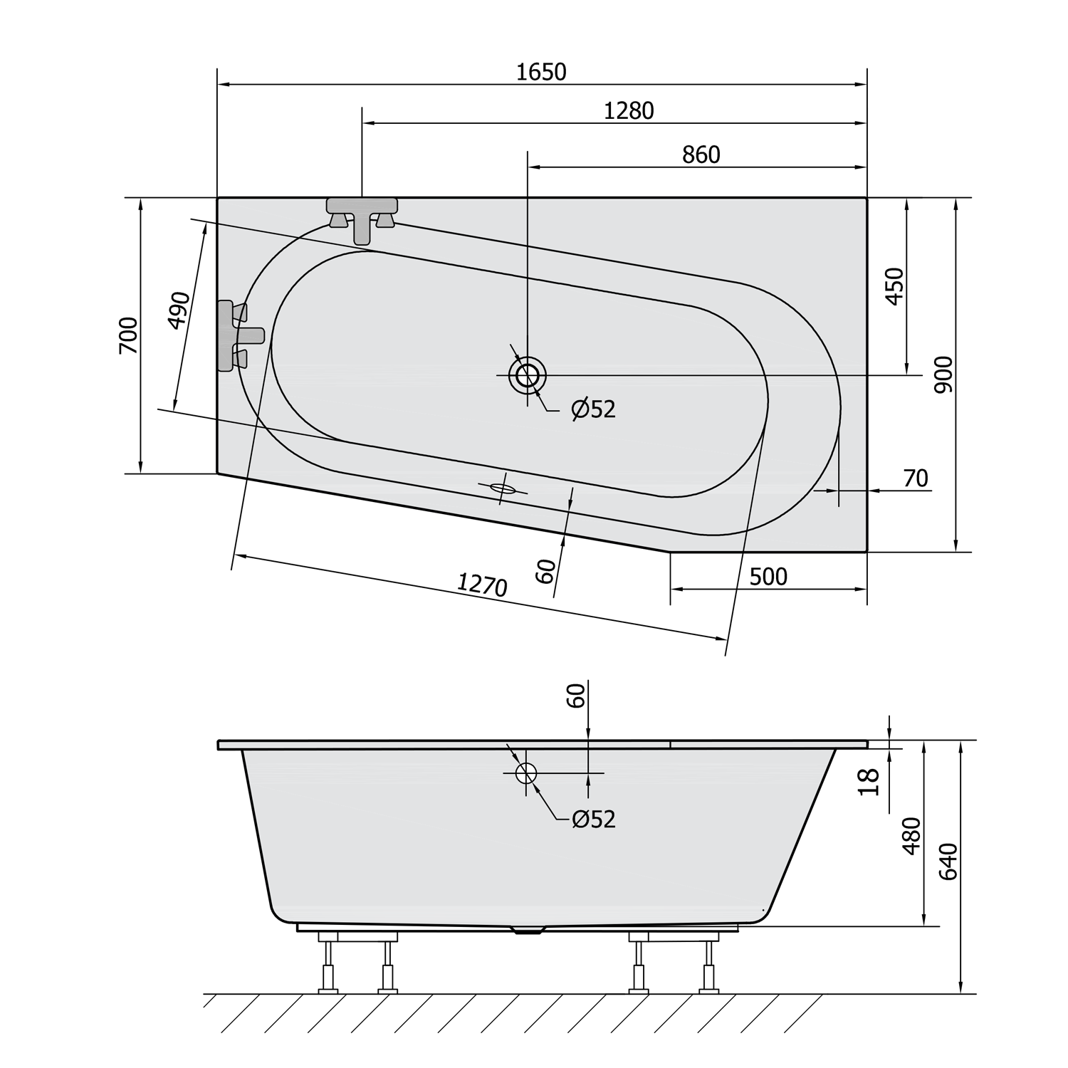 ASTRA WR SLIM asymetrická vana 165x90x48cm, bílá