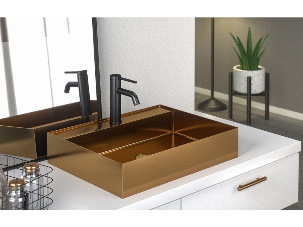 AURUM nerezové nástěnné umyvadlo, 55x42cm, včetně výpusti, měď mat