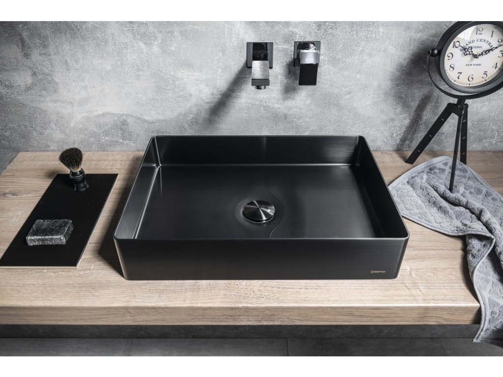 AURUM nerezové umyvadlo na desku, 50x35cm, včetně výpusti, gun metal