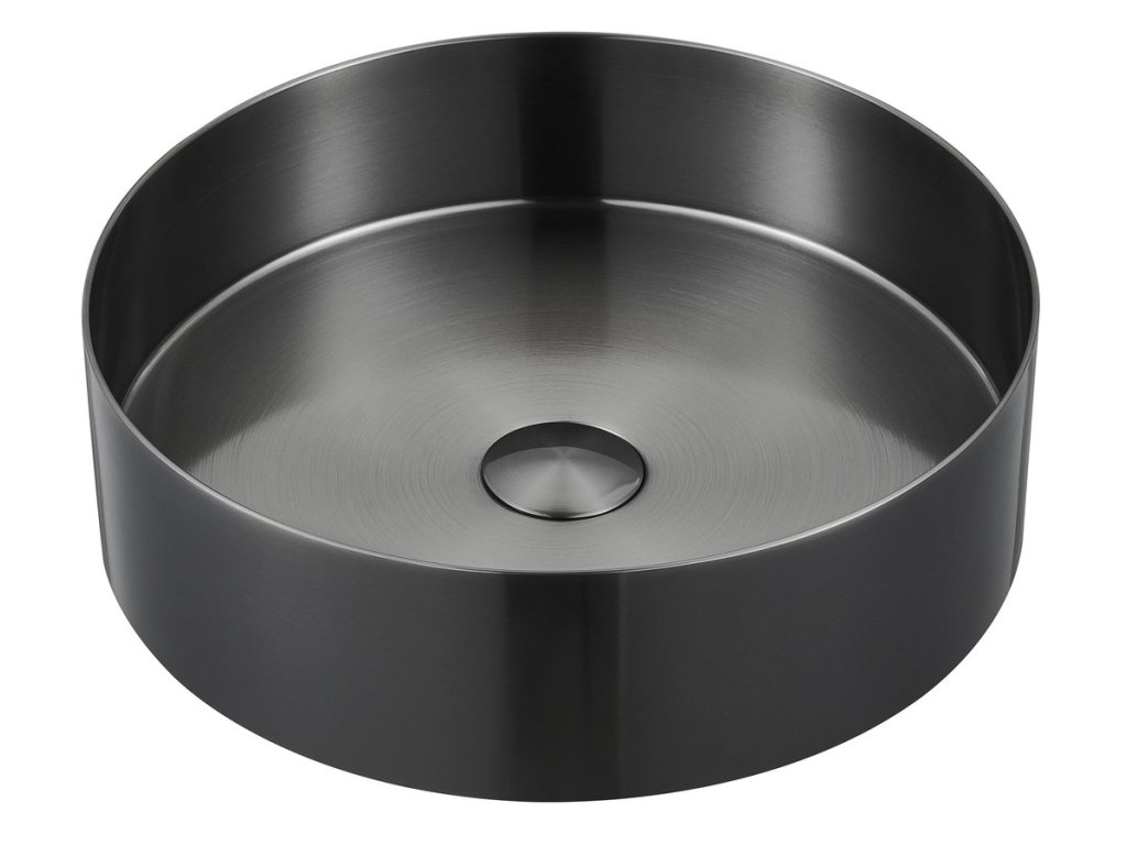AURUM nerezové umyvadlo na desku, průměr 38cm, včetně výpusti, gun metal
