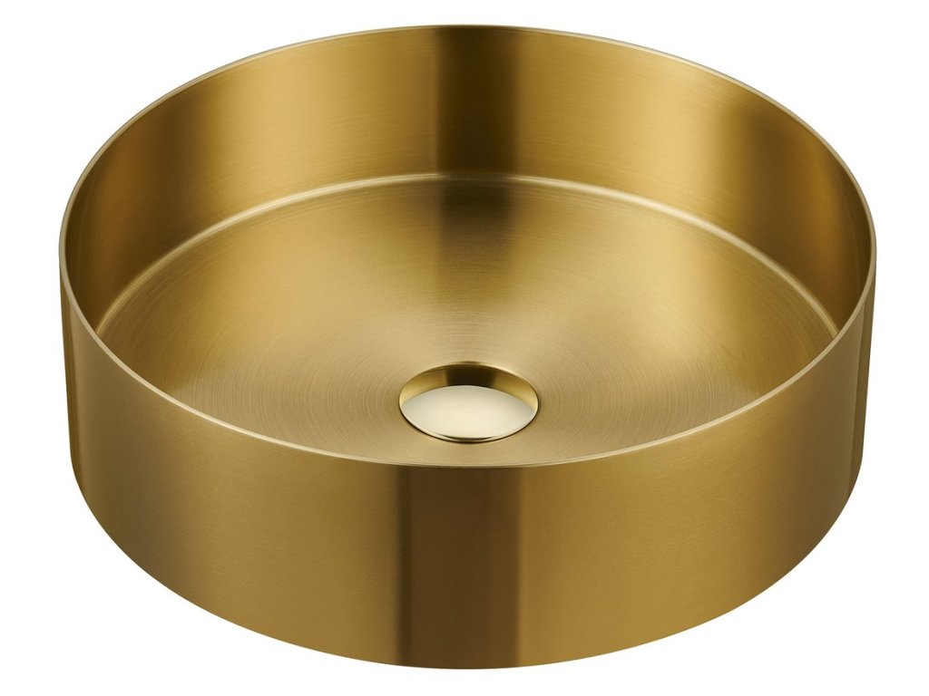 AURUM nerezové umyvadlo na desku, průměr 38cm, včetně výpusti, zlato mat