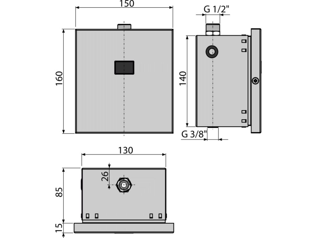 Automatický splachovač pisoáru, kov, 6 V (napájení z baterie)