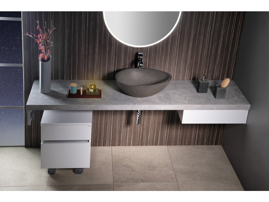 Série doplňkových skříněk k umyvadlovým deskám řady AVICE nabízí různé varianty skříněk od závěsných pod desku až po skříňky pojezdové. Vybírejte, kombinujte a dolaďte vzezření své umyvadlové sestavy k dokonalosti.