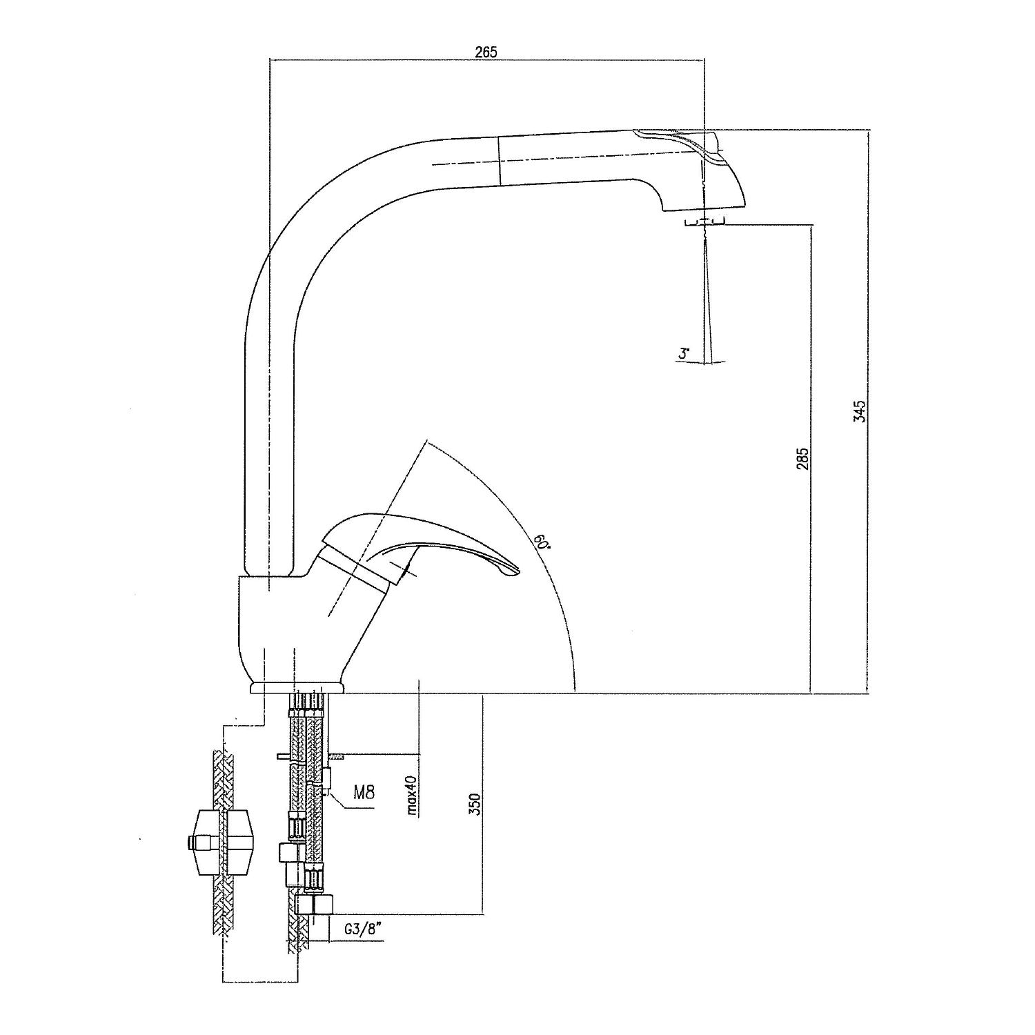 AXUS stojánková dřezová baterie s výsuvnou sprškou, výška 345 mm, chrom