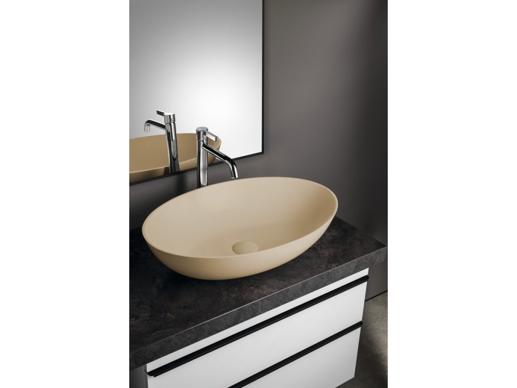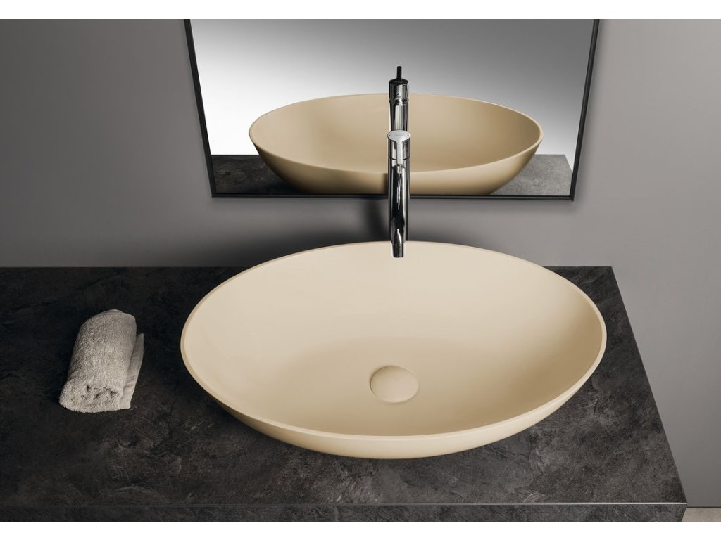 BANERA OVAL umyvadlo na desku, litý mramor, 60x40cm, béžová mat