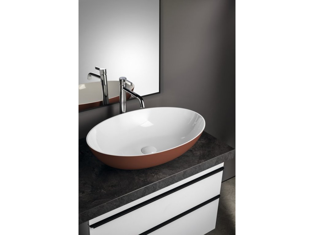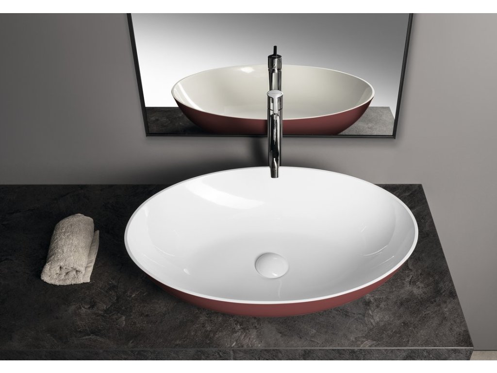 BANERA OVAL umyvadlo na desku, litý mramor, 60x40cm, bílá/hnědá mat