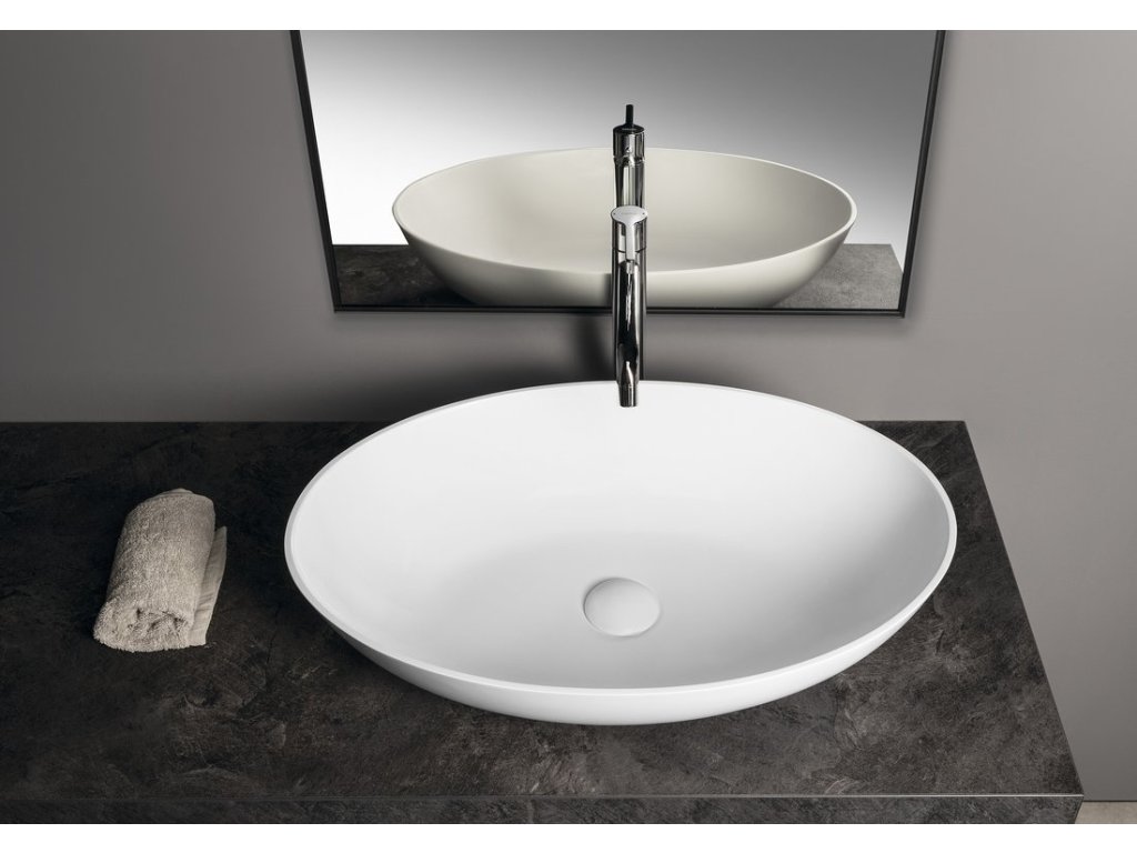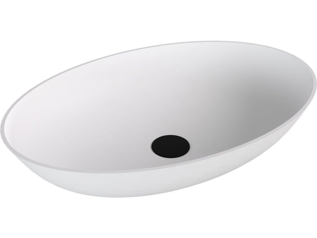 BANERA OVAL umyvadlo na desku, litý mramor, 60x40cm, bílá mat