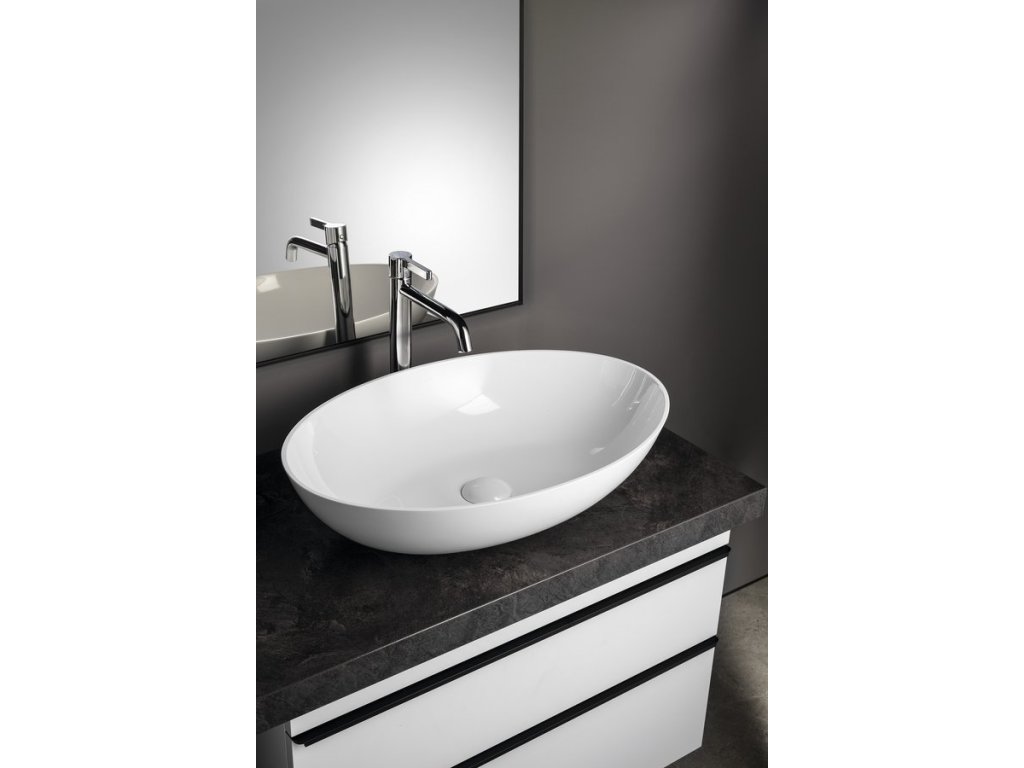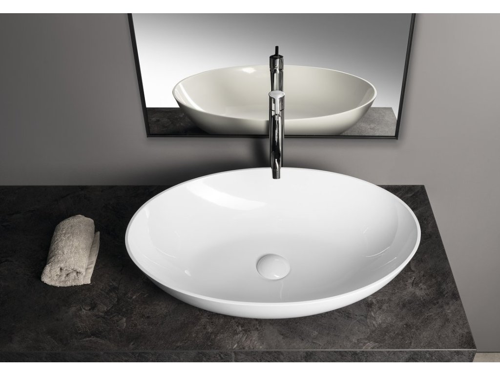 BANERA OVAL umyvadlo na desku, litý mramor, 60x40cm, bílá