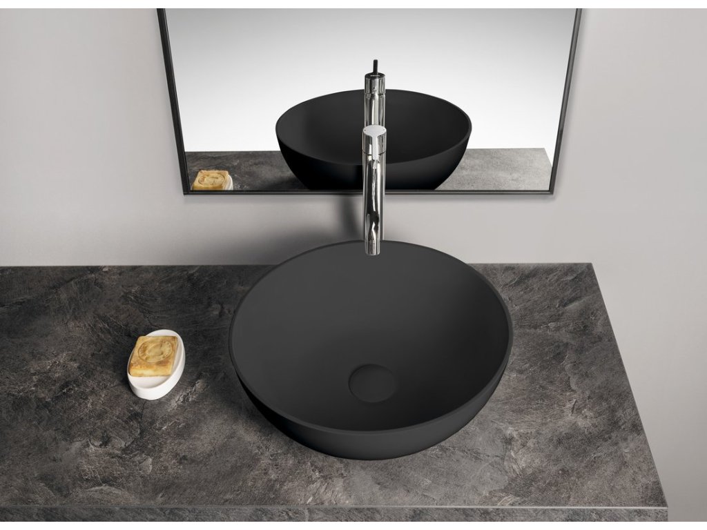 BANERA ROUND umyvadlo na desku, litý mramor, průměr 39cm, antracit mat