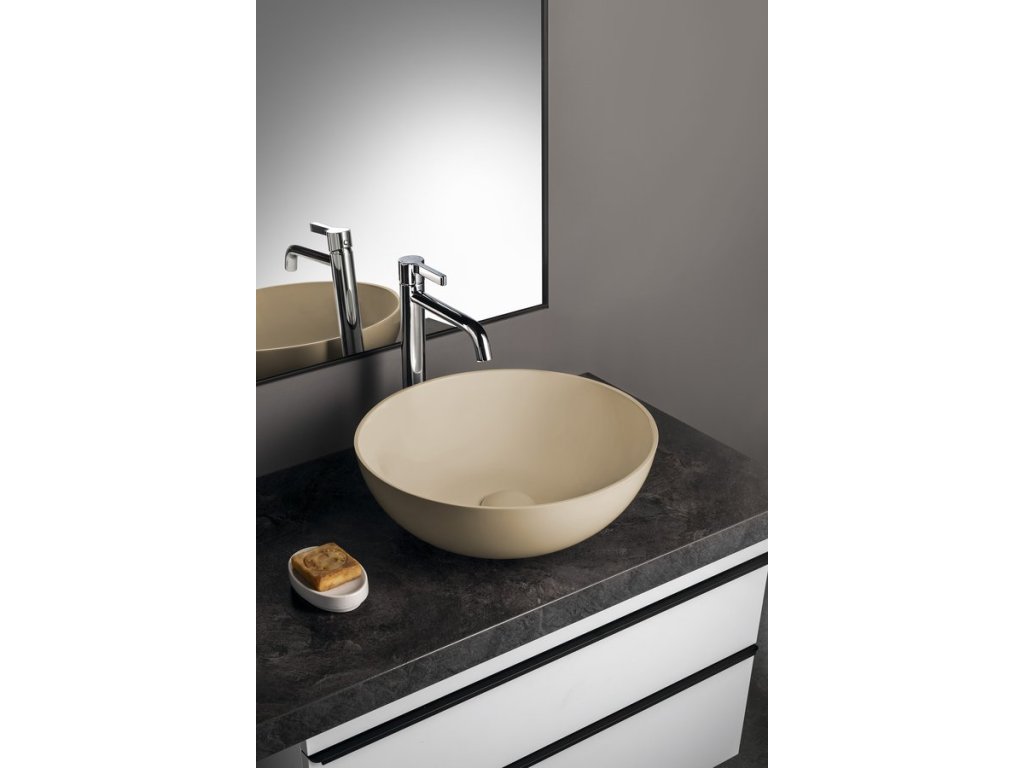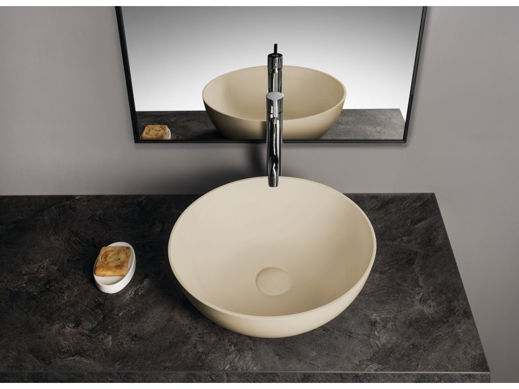 BANERA ROUND umyvadlo na desku, litý mramor, průměr 39cm, béžová mat