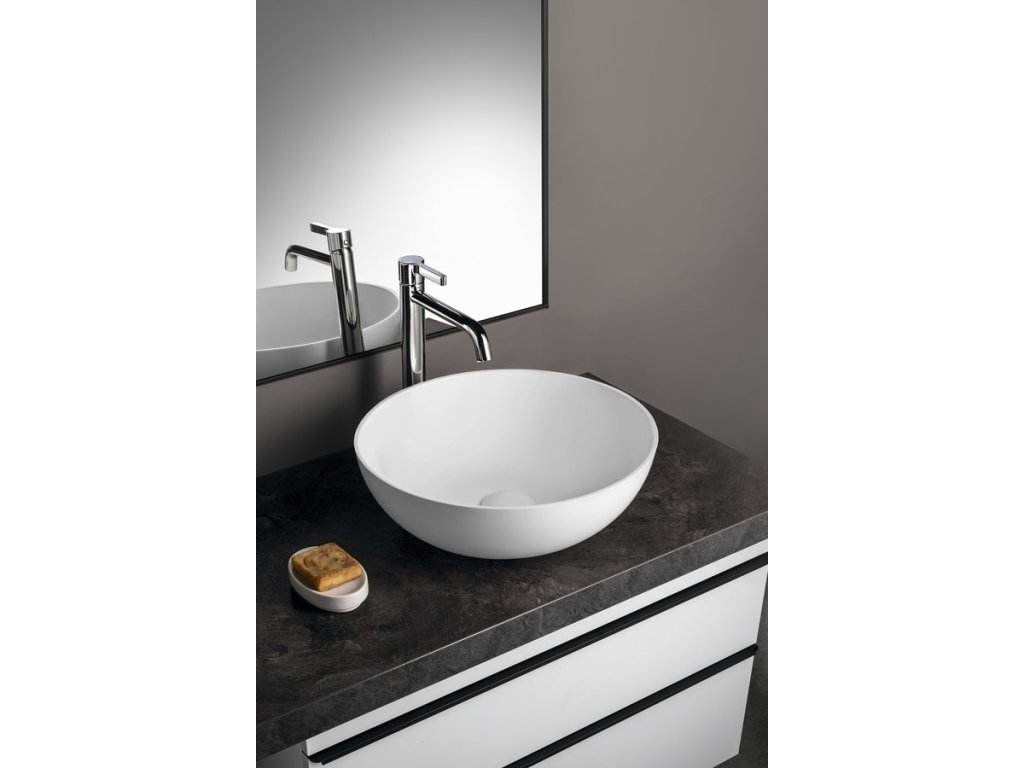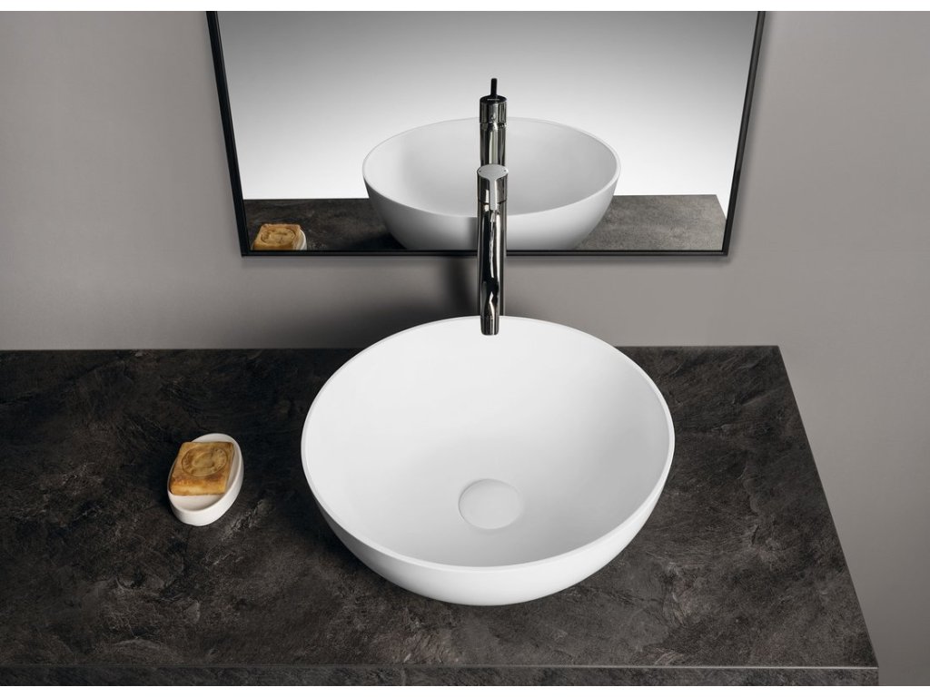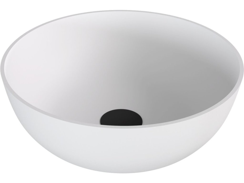 BANERA ROUND umyvadlo na desku, litý mramor, průměr 39cm, bílá mat