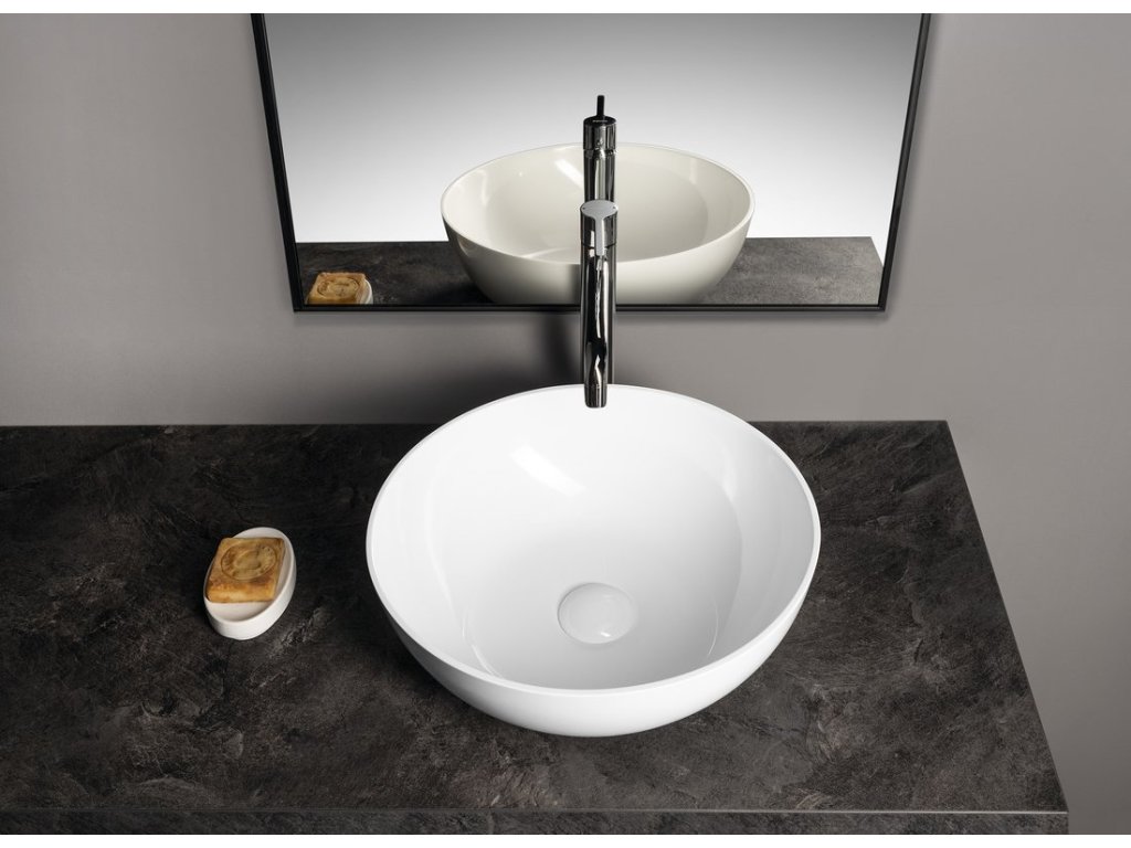 BANERA ROUND umyvadlo na desku, litý mramor, průměr 39cm, bílá