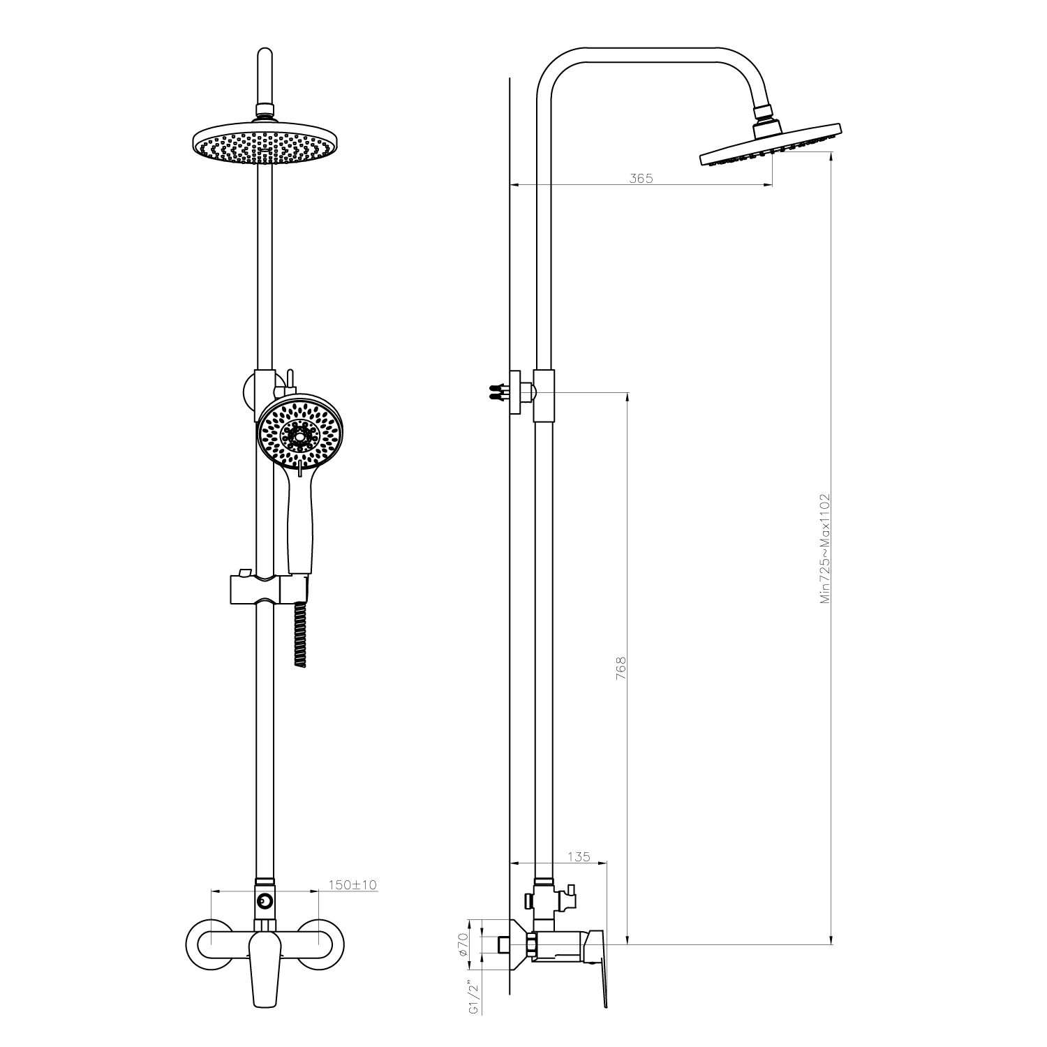 | Instalace: | Nástěnná 150 mm |