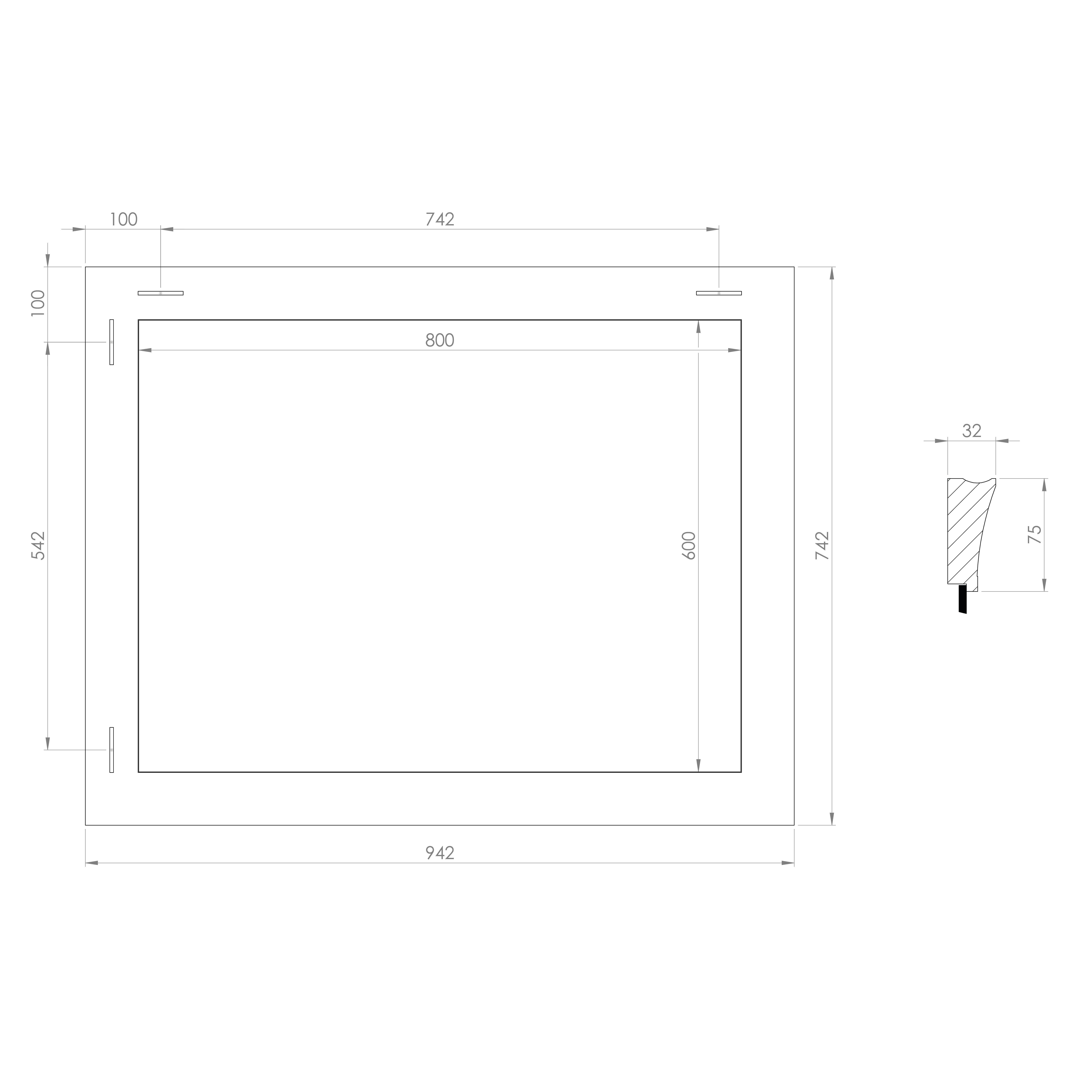 Možné vyrobit v atypickém rozměru: max. rozměr rámu 1242x842 mm (zrcadlo 1100x700 mm, doba dodání do 30 dnů, cena na dotaz).