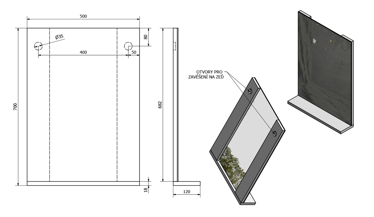 - Vzhledem k lepší přepravě a manipulaci jsou zrcadlo a polička dodávány zvlášť, nutná montáž